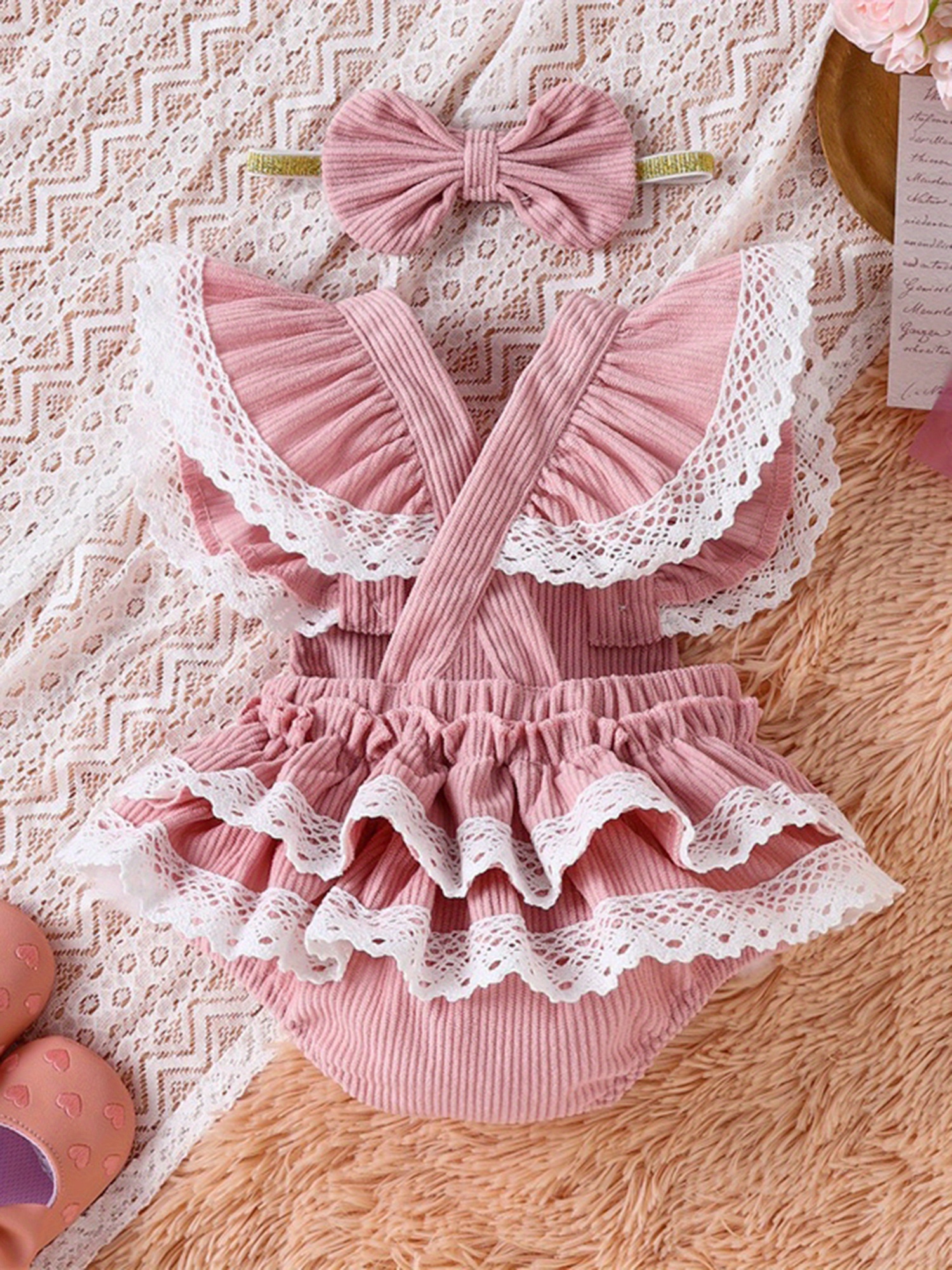 0.0-59.06ft Cute Girl Set, 2pcs Embroidered Elephant Love jumpsuit+Butterfly Bow Hairband Summer Clothing, for Outdoor