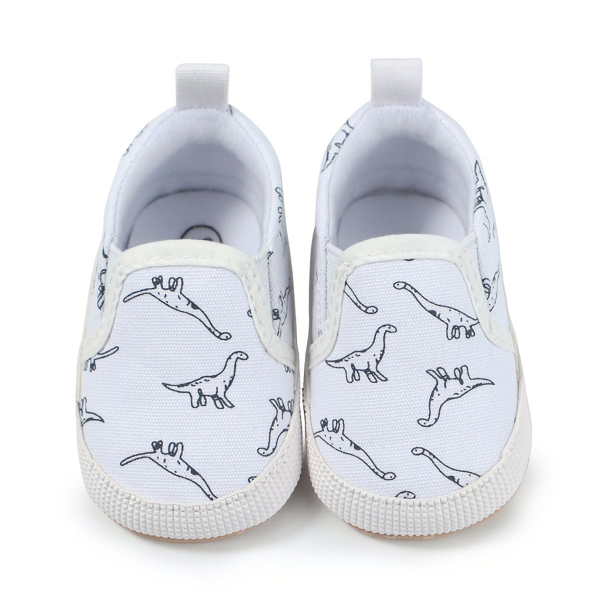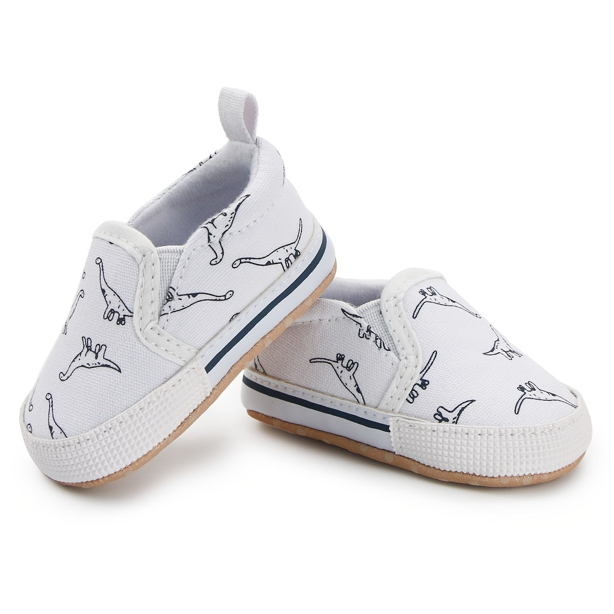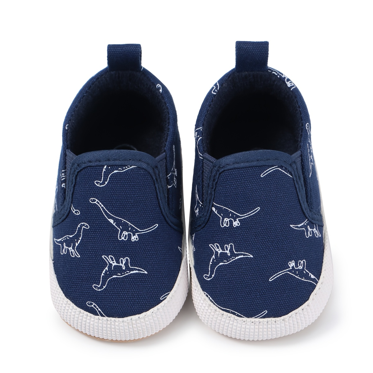 0-3 Months Slip-On Sneakers - Cute Cartoon Dinosaur Pattern Soft Fabric Low-Top Shoes for Indoor Crib Shoes, Spring & Autumn Daily Wear (Navy/White), Shoes