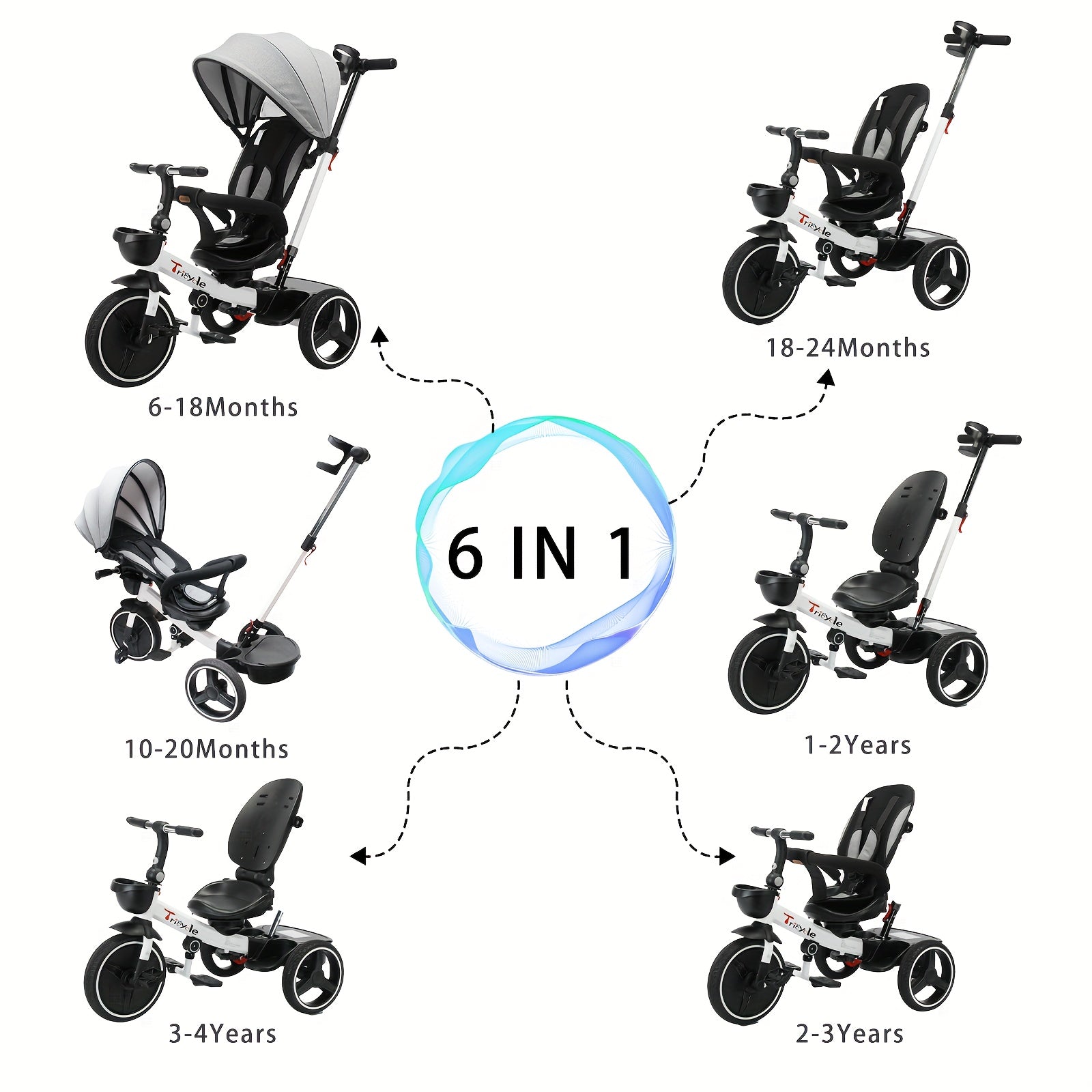 Multi-Functional 6-in-1 Tricycle Stroller with Adjustable Canopy and Shock Absorption