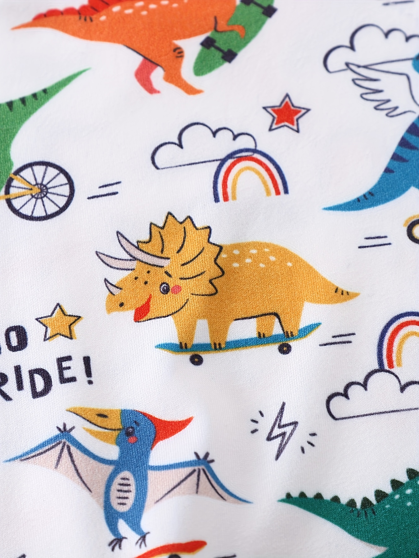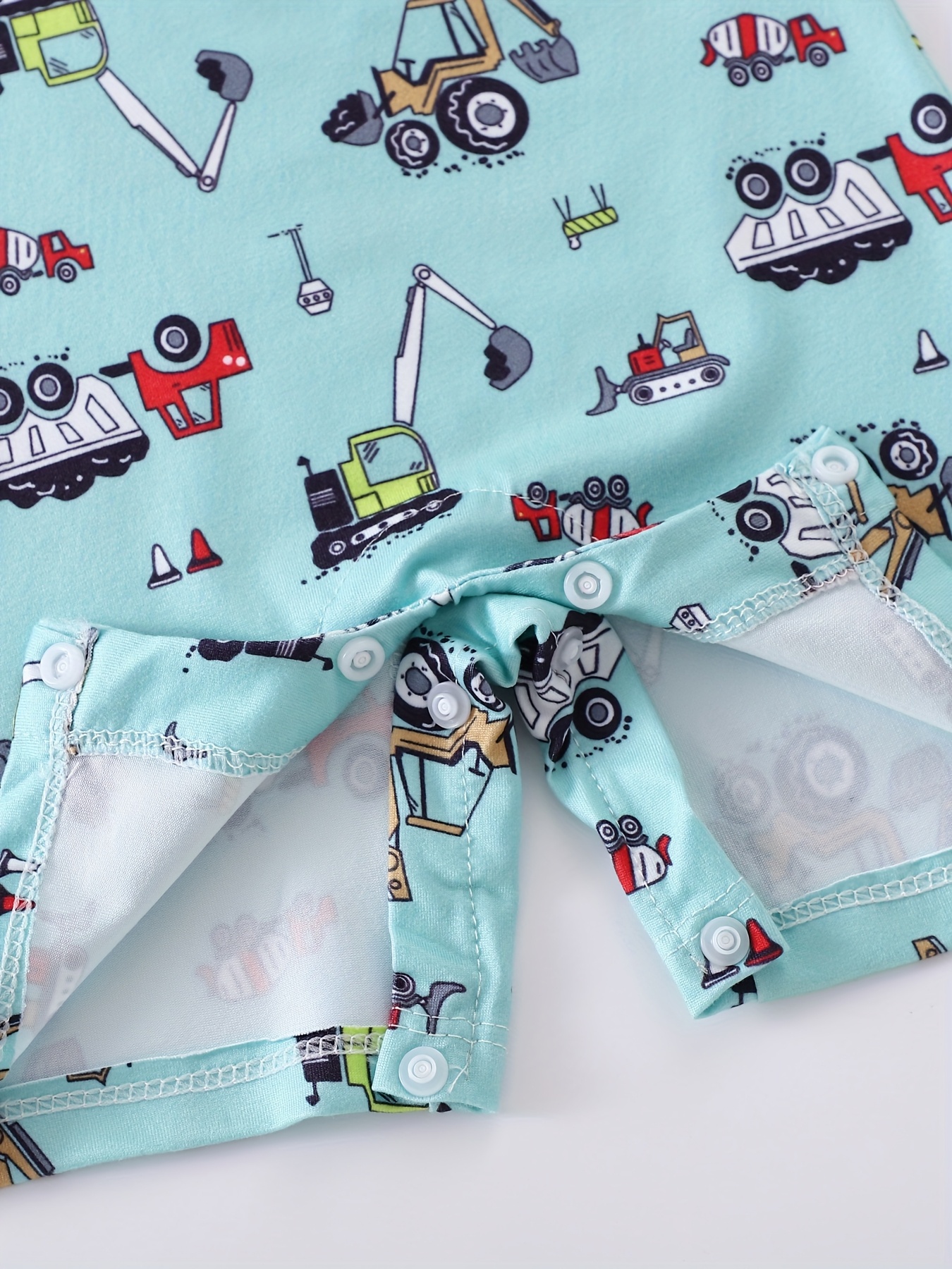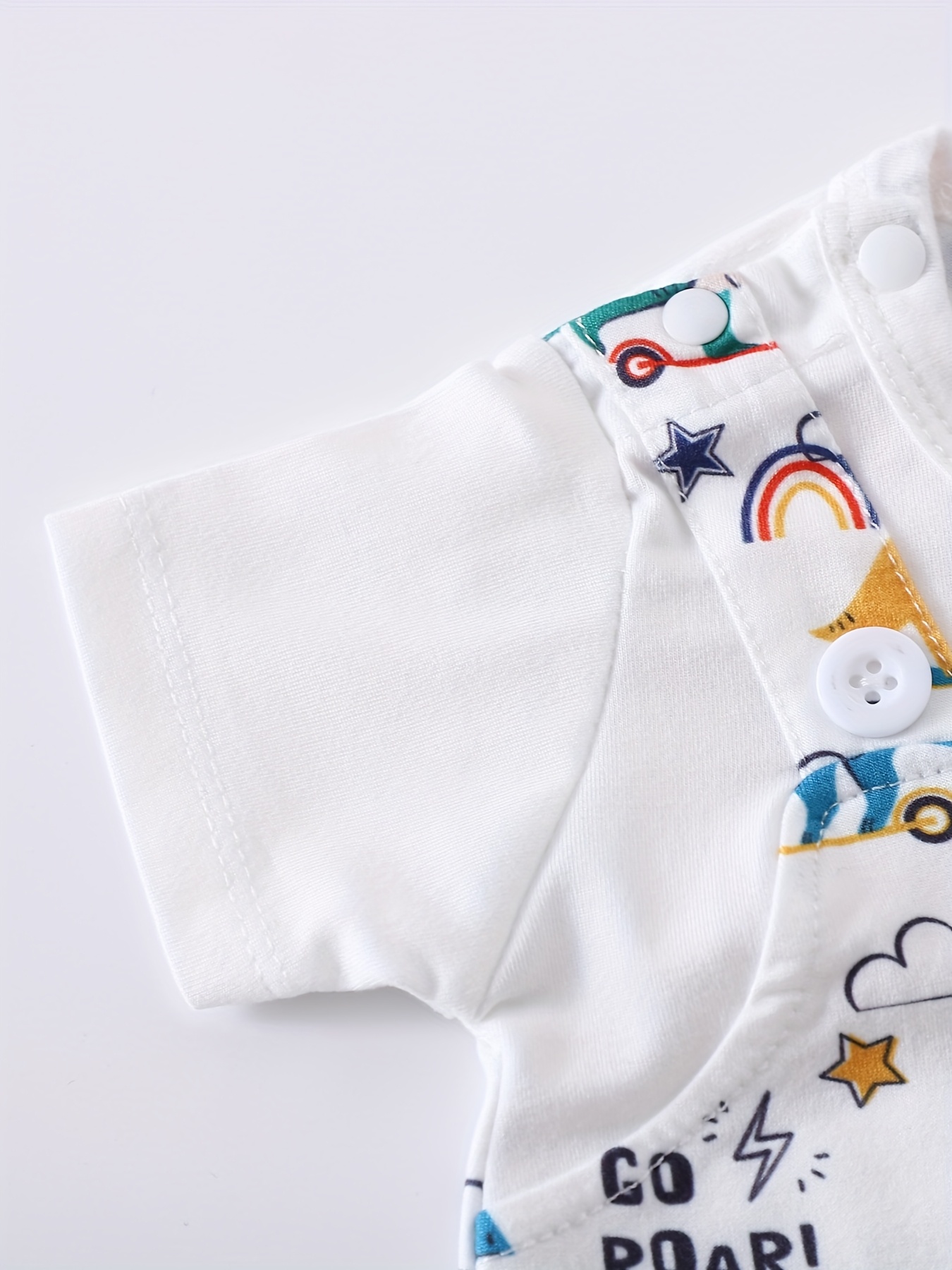 2pcs 2025 Boys' Summer Fashion Casual Short Sleeve Romper with Back Strap Pants and Faux Two-Piece Jumpsuit Dinosaur Excavator Pattern Bodysuits for Ages 0.0-29.53ft, Perfect for Outdoor