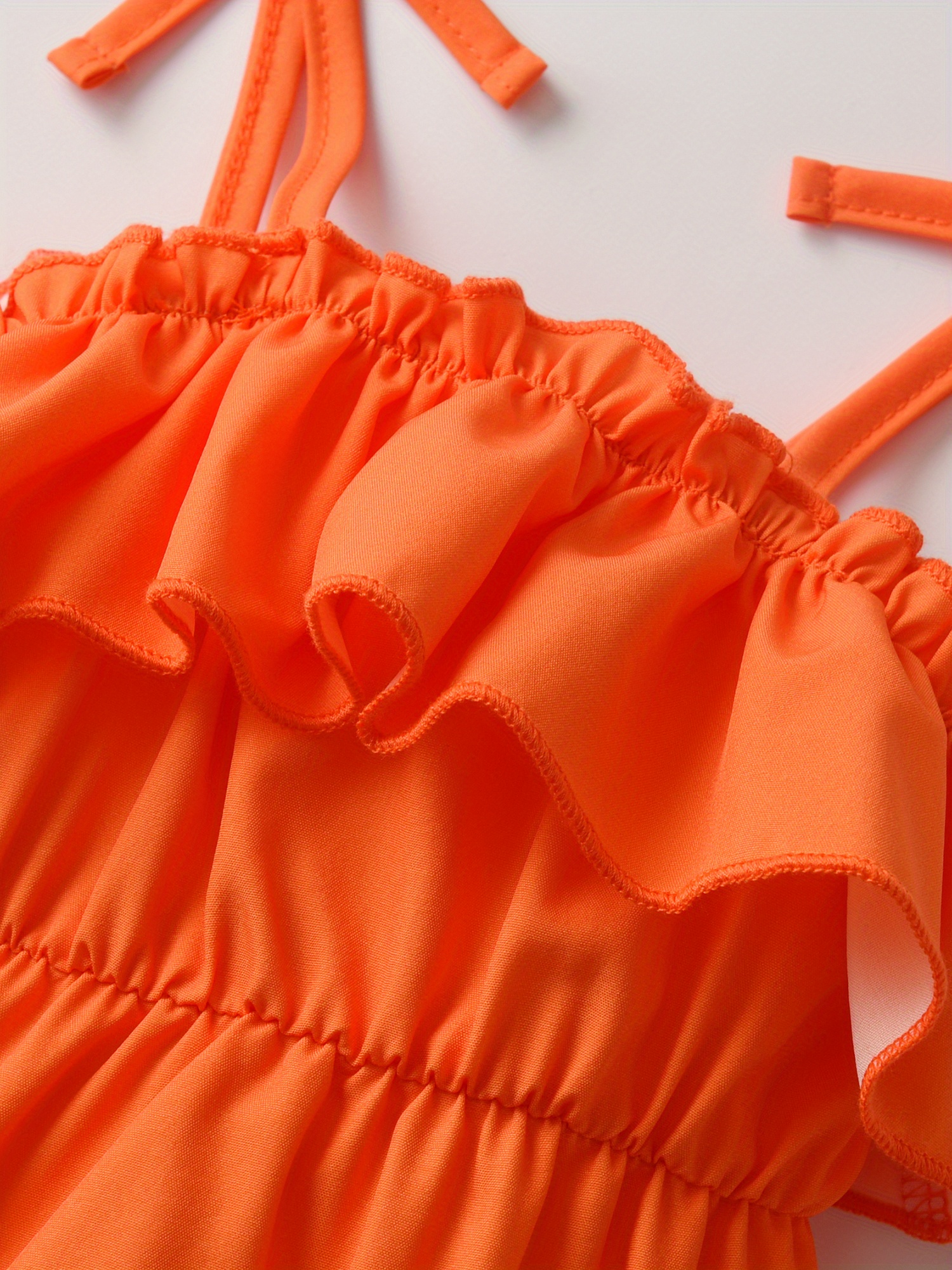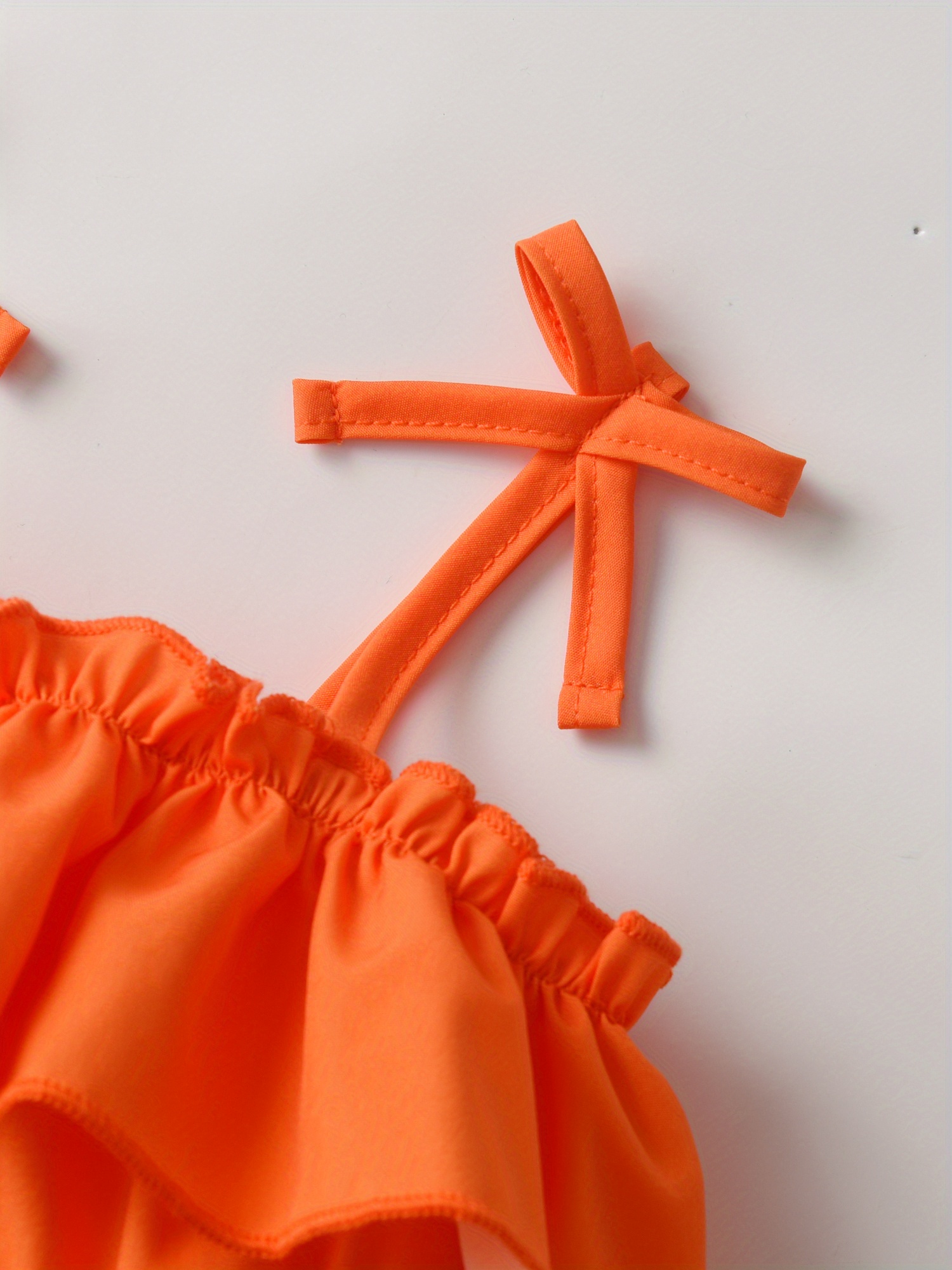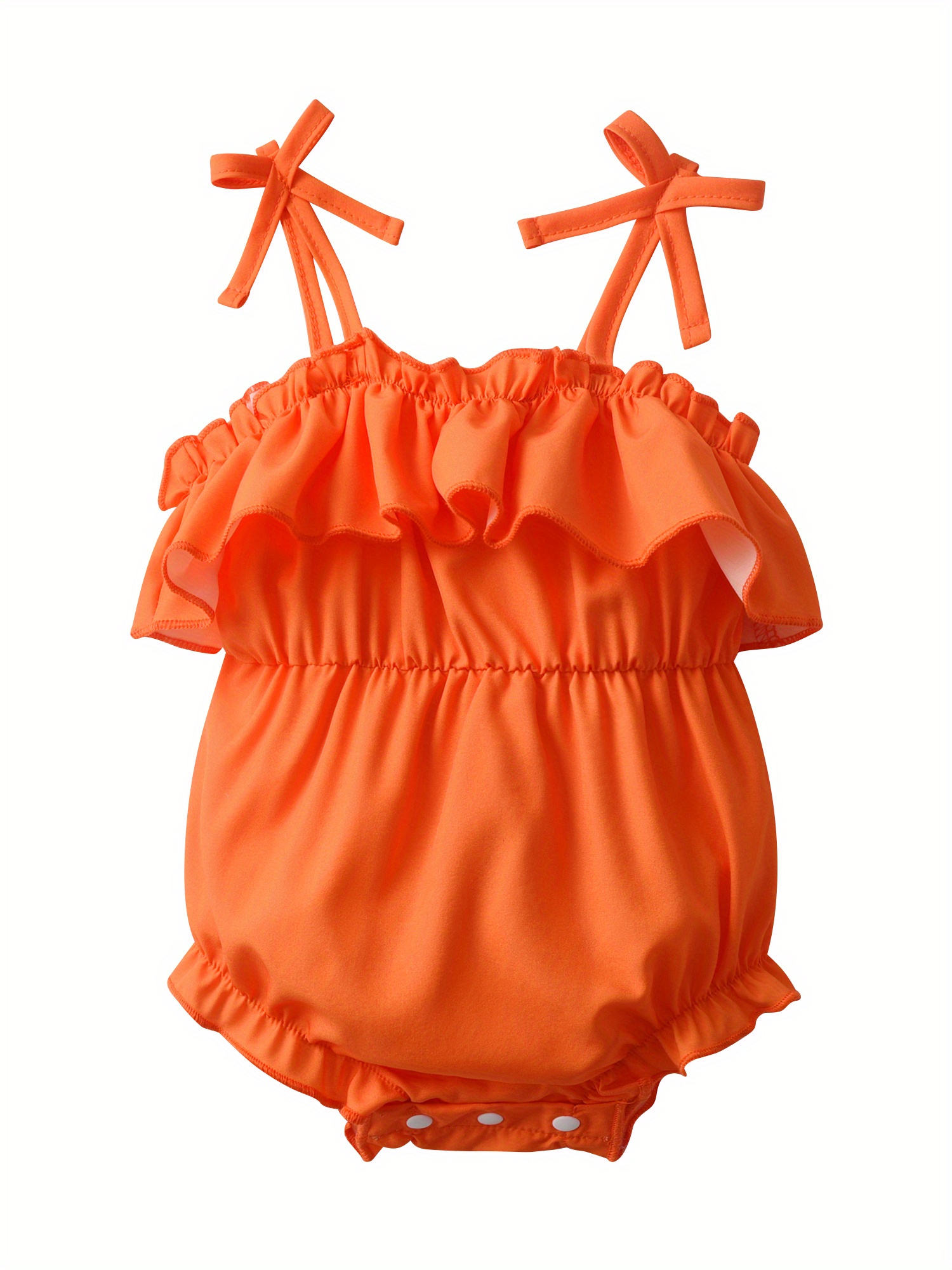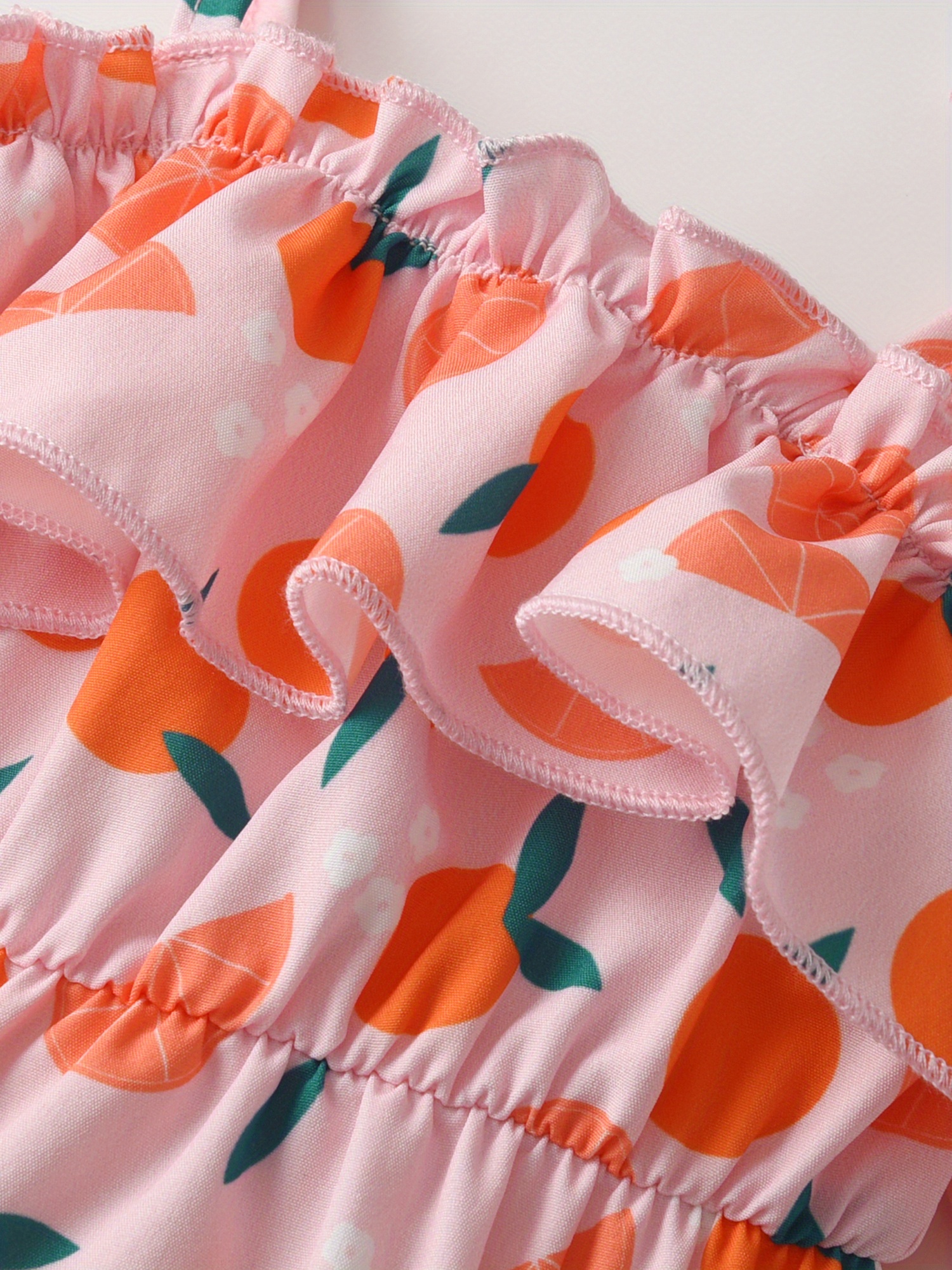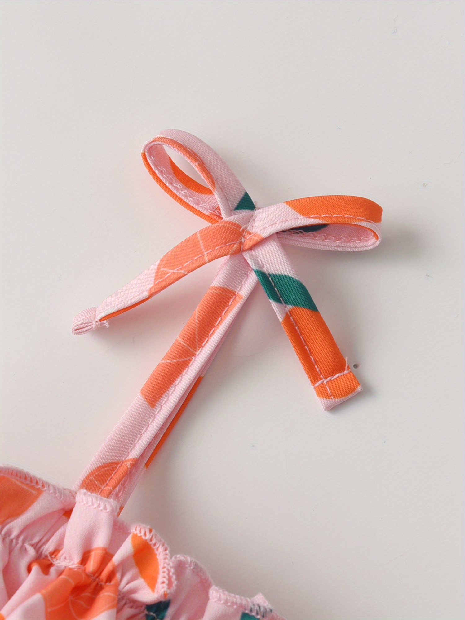 2pcs Newborn Baby Girls Rompers - Sleeveless Ruffled Bodysuits with Orange & Pink Polka Dot & Citrus Fruit Print, Soft Breathable Summer Outfits, Machine Washable Daily Wear, Baby Girl Outfits, Comfortable Infant Clothing, Pl