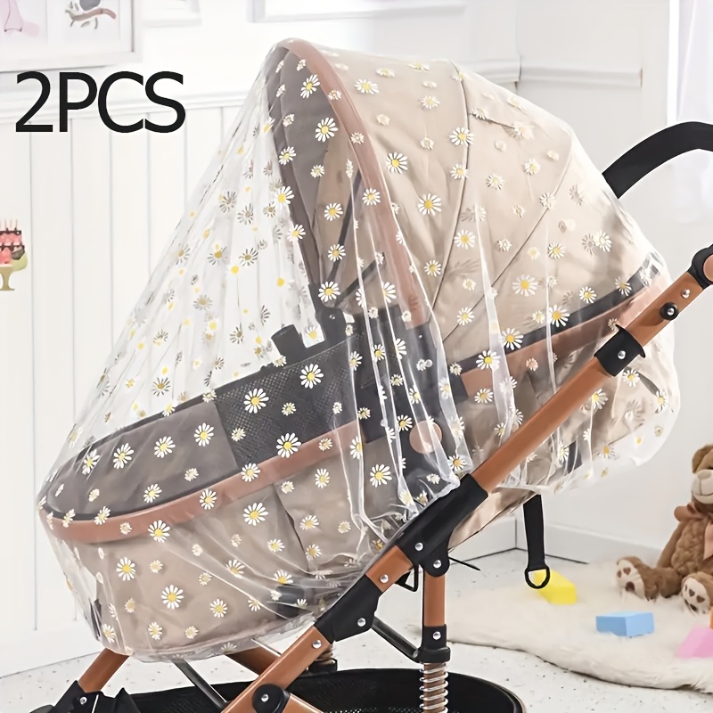 2pcs Portable Daisy Print Mosquito Net for Stroller, Youngsters Pram Netting Cover with White Daisy Pattern, Durable Chenille Fabric, Perfect Fit for Strollers, Bassinets, Mini Cribs & Playards – Machine Washable, Youngster