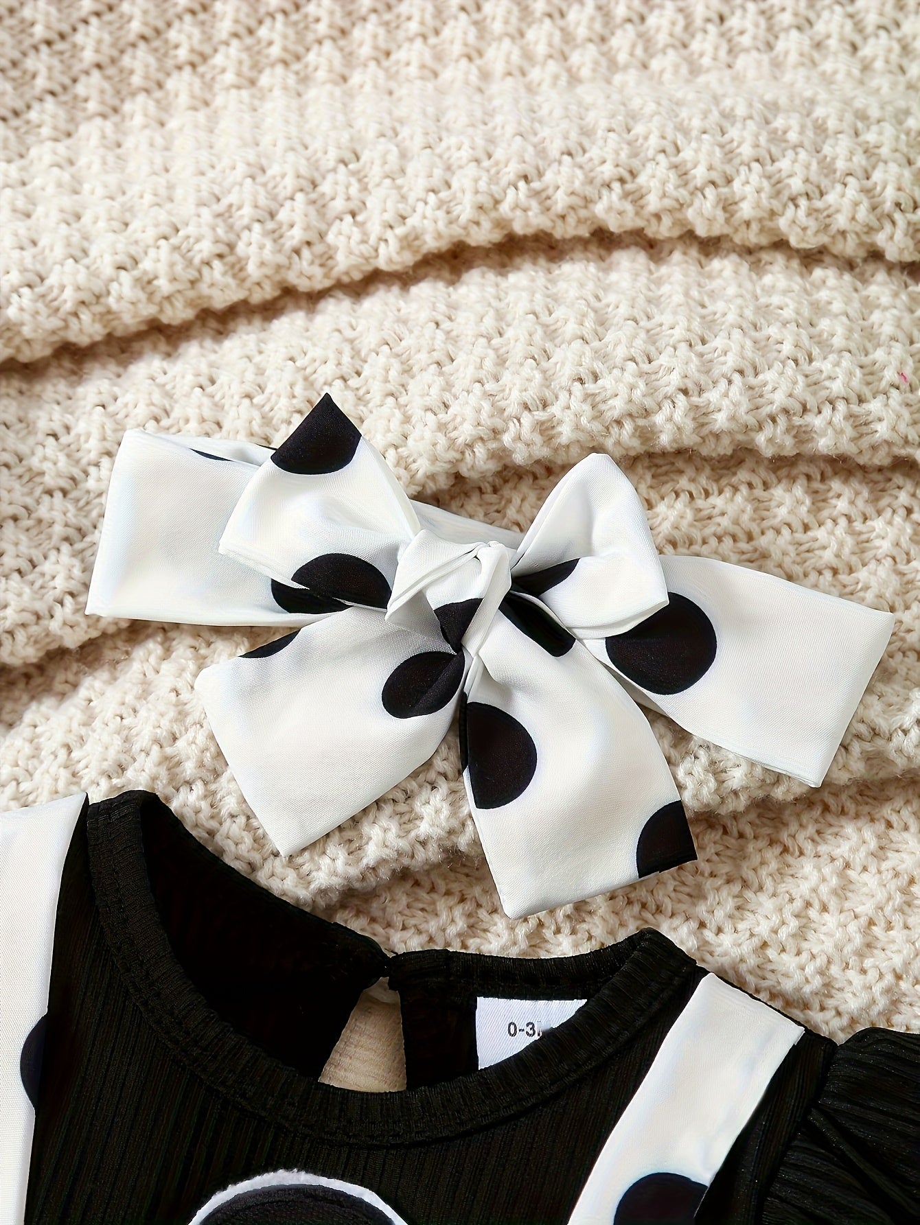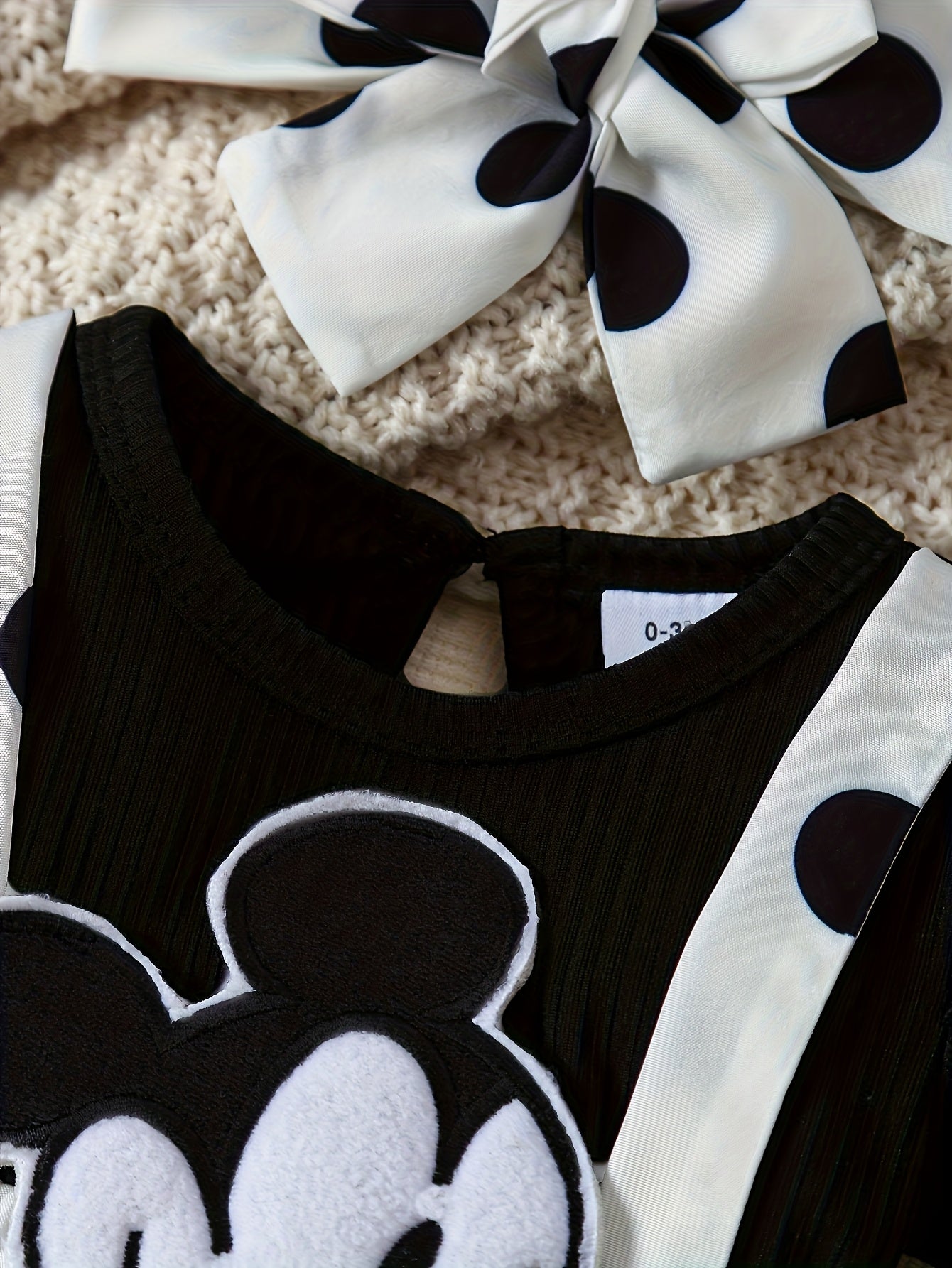2pcss Set Of Baby Girl Fake, 2pcss Short Sleeved Short Sleeved Polka Dot Suspender Jumpsuit, Cartoon Mouse Embroidery 3D Doll Jumpsuit, Pants Set For Baby Girl'S Clothes, for Outdoor