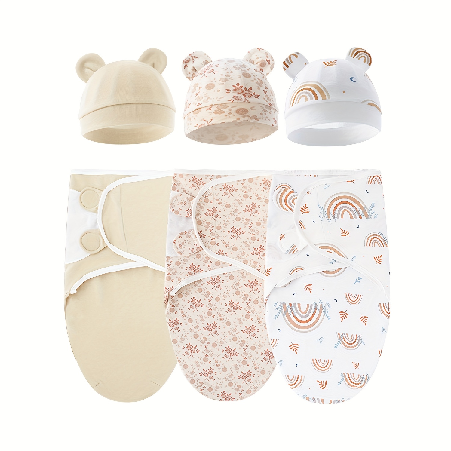 3 Sets Of Newborn Swaddle Blankets And Hats For 0-6 Months Boys And Girls, Newborn Anti-Shock Swaddle Design, Newborn Gift.