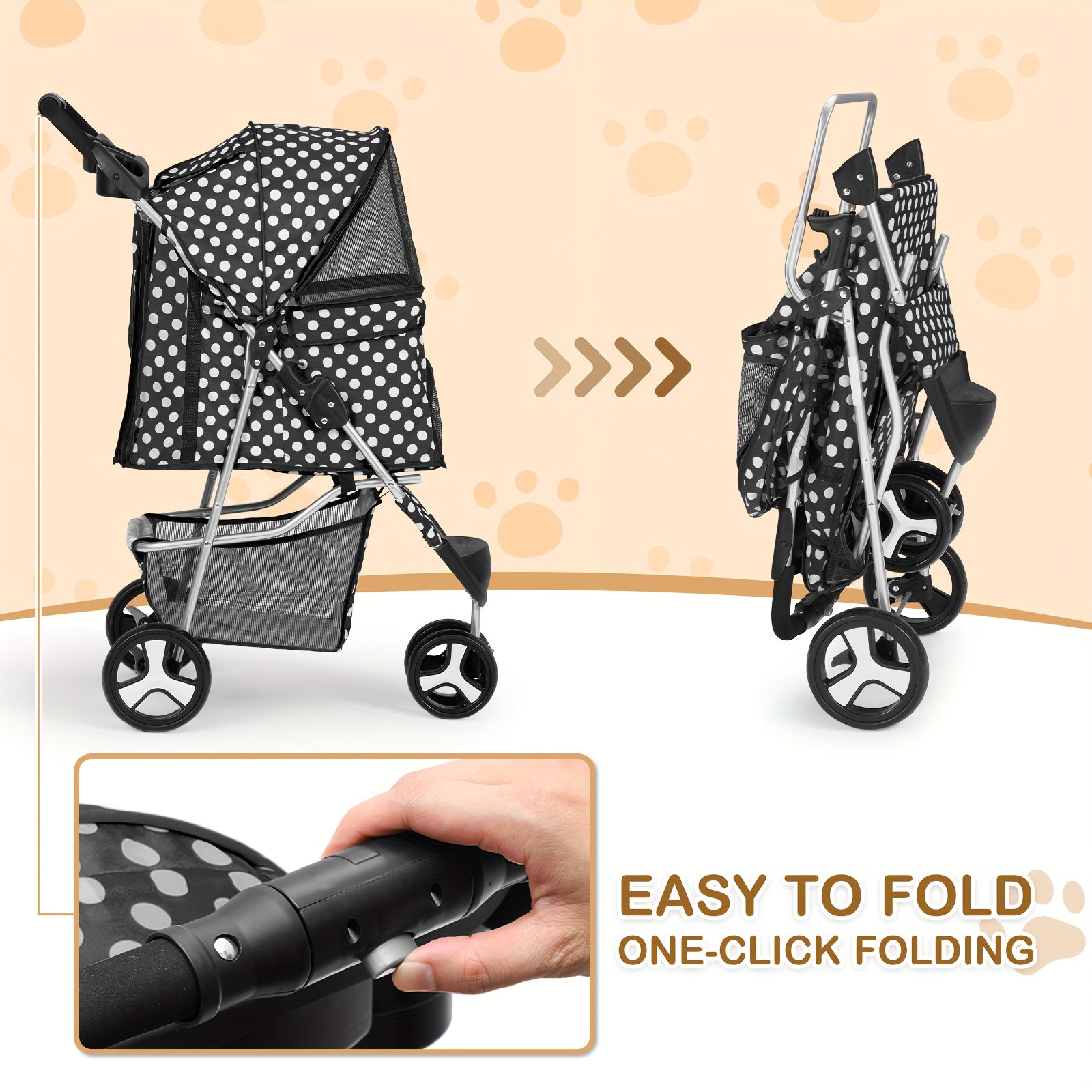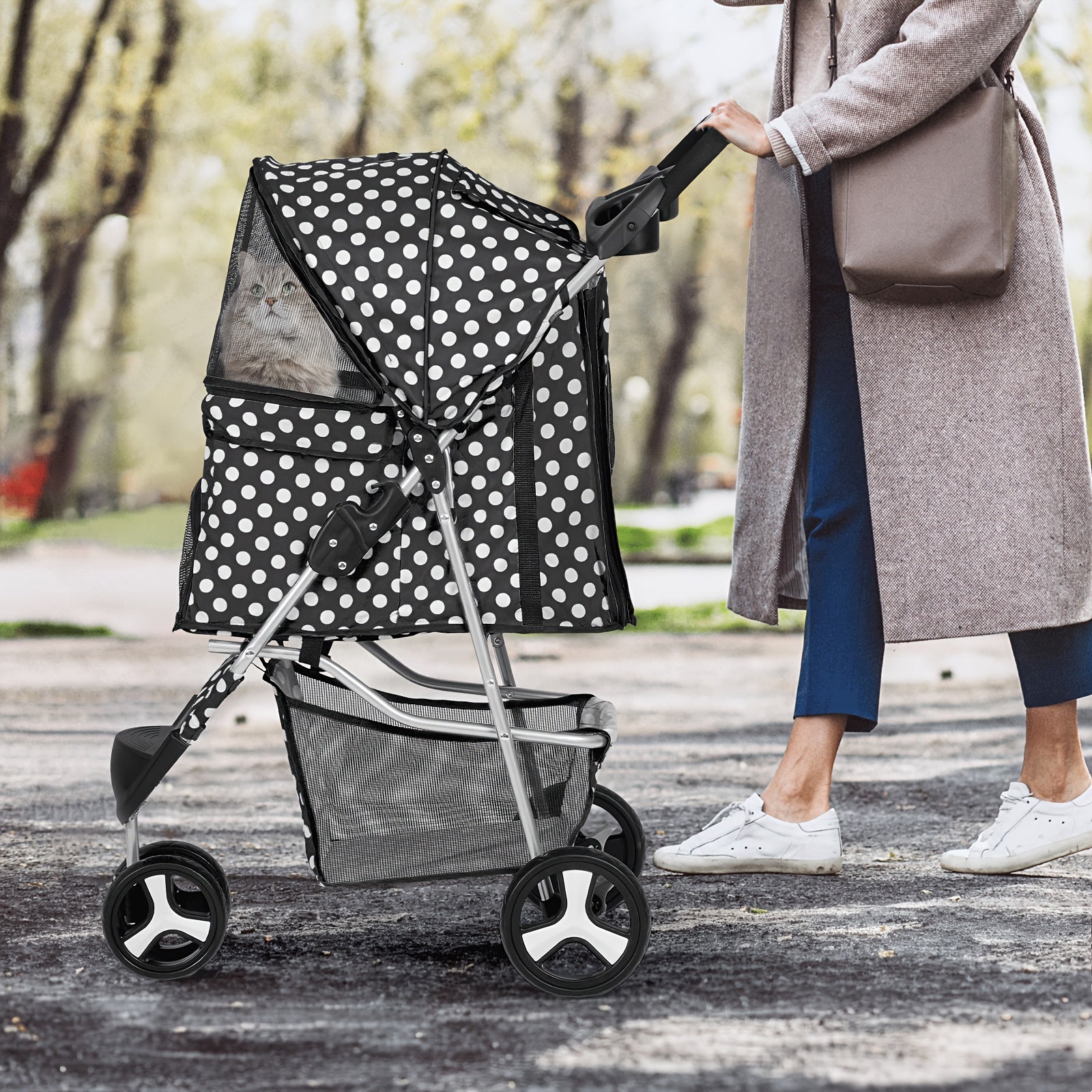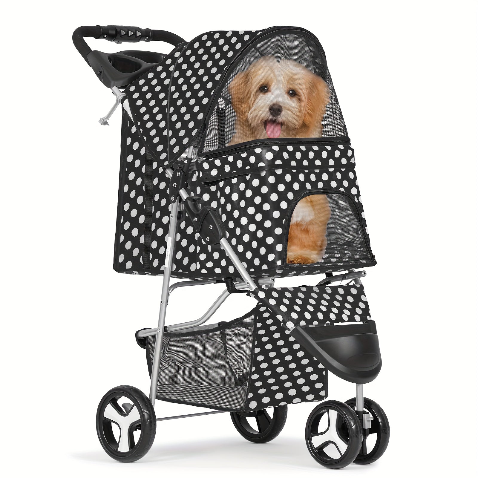 3 Wheels Pet Dog Cat Stroller for Small Medium Dogs Cats - Foldable Jogger Stroller w/Storage Basket and Cup Holder - For Pet Owners - Suitable for Outdoor Walks & Travel - Great Gift for Dog & Cat Lovers