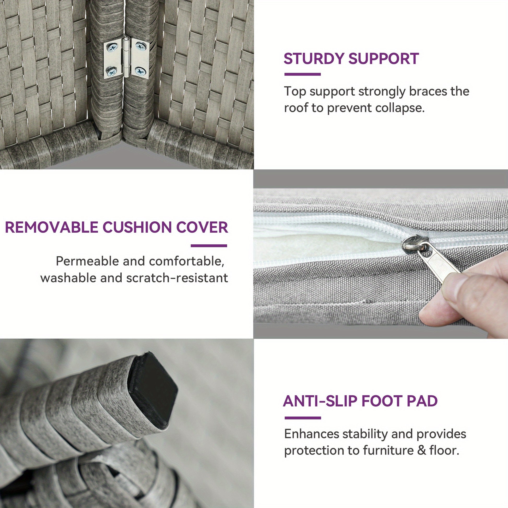 Designed with functionality in mind, this elevated dog house features a spacious interior, ensuring ample room for dogs of all sizes. The comfortable cushion included adds an extra layer of softness, making it the perfect lounging spot for your beloved pet. With its durable rattan material, this dog house is built to withstand various weather conditions, ensuring long-lasting use.