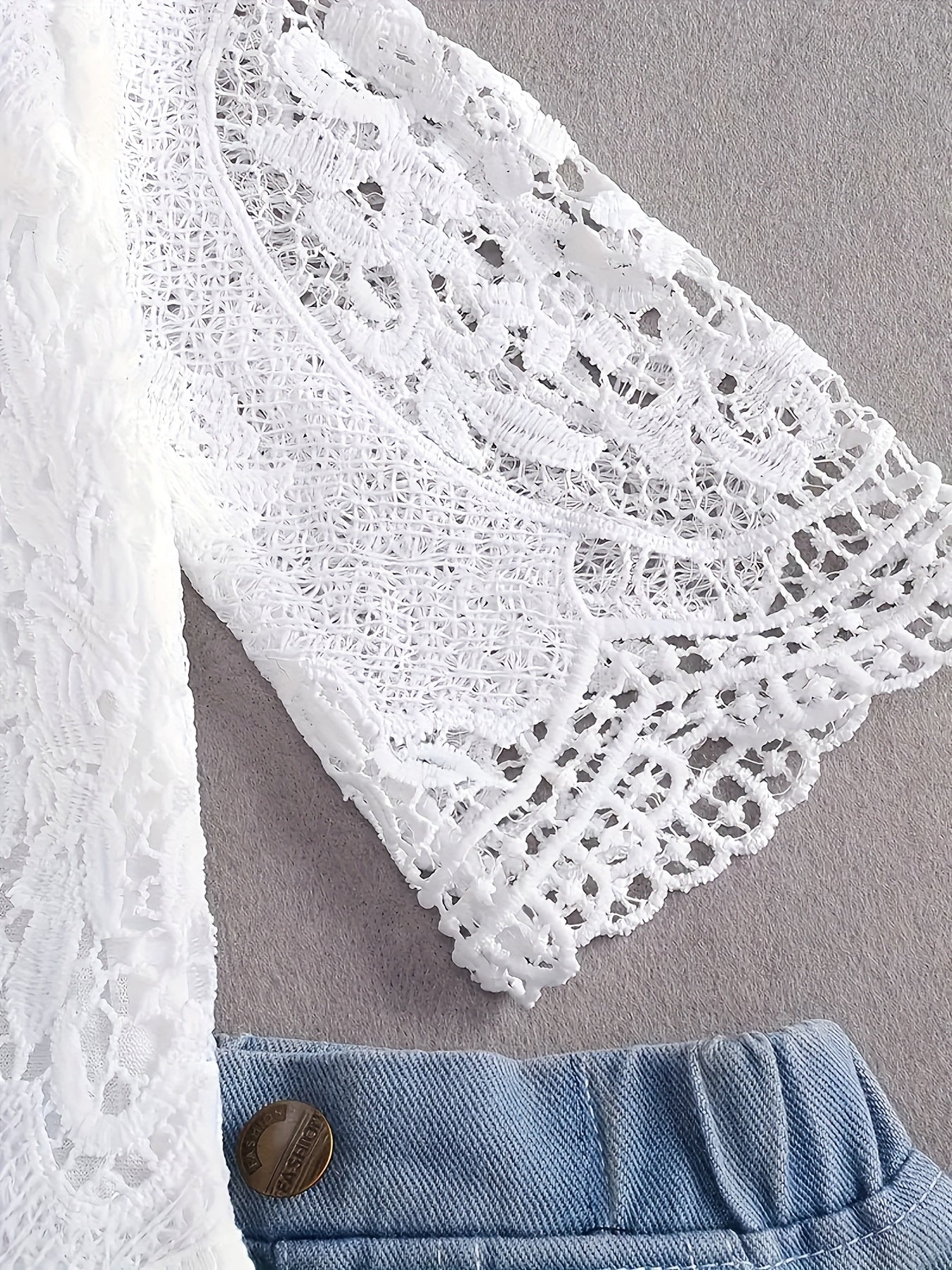- Contrast lace details elevate the outfit with a subtle, feminine touch.