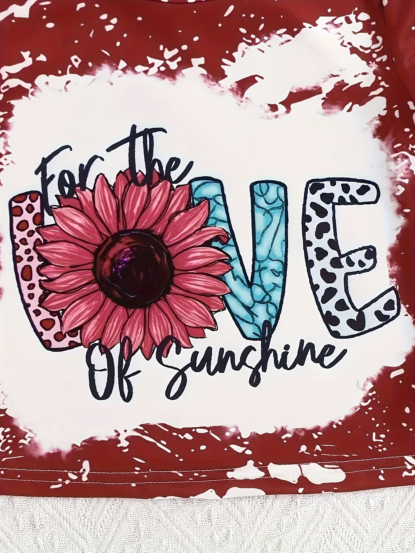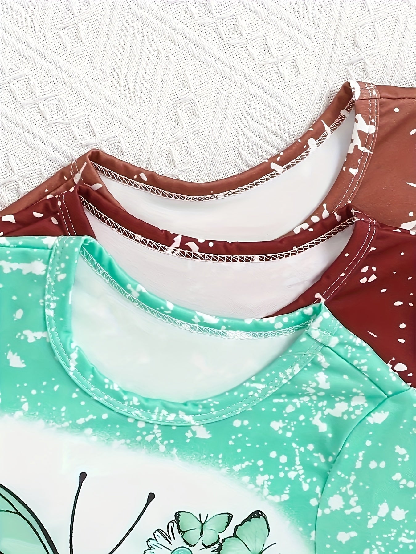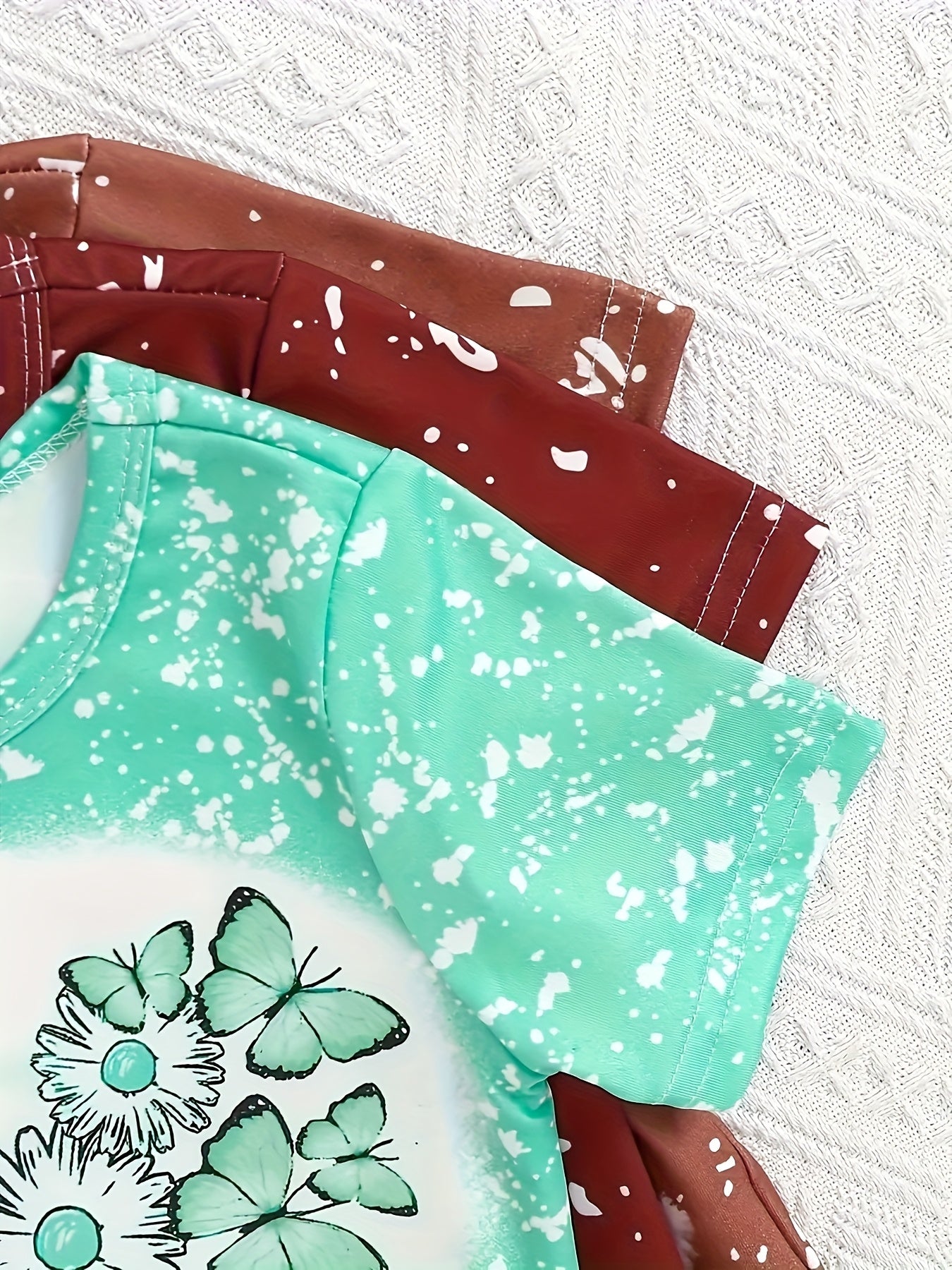3pcs Set Girls' Long Pants Outfits - Floral Print, Crew Neck Short-Sleeve T-Shirt & Flared Pants, Polyester Knit Fabric with Slight Stretch - Spring/Summer/Fall Casual Wear | Machine Washable | Elegant Ruffle Details