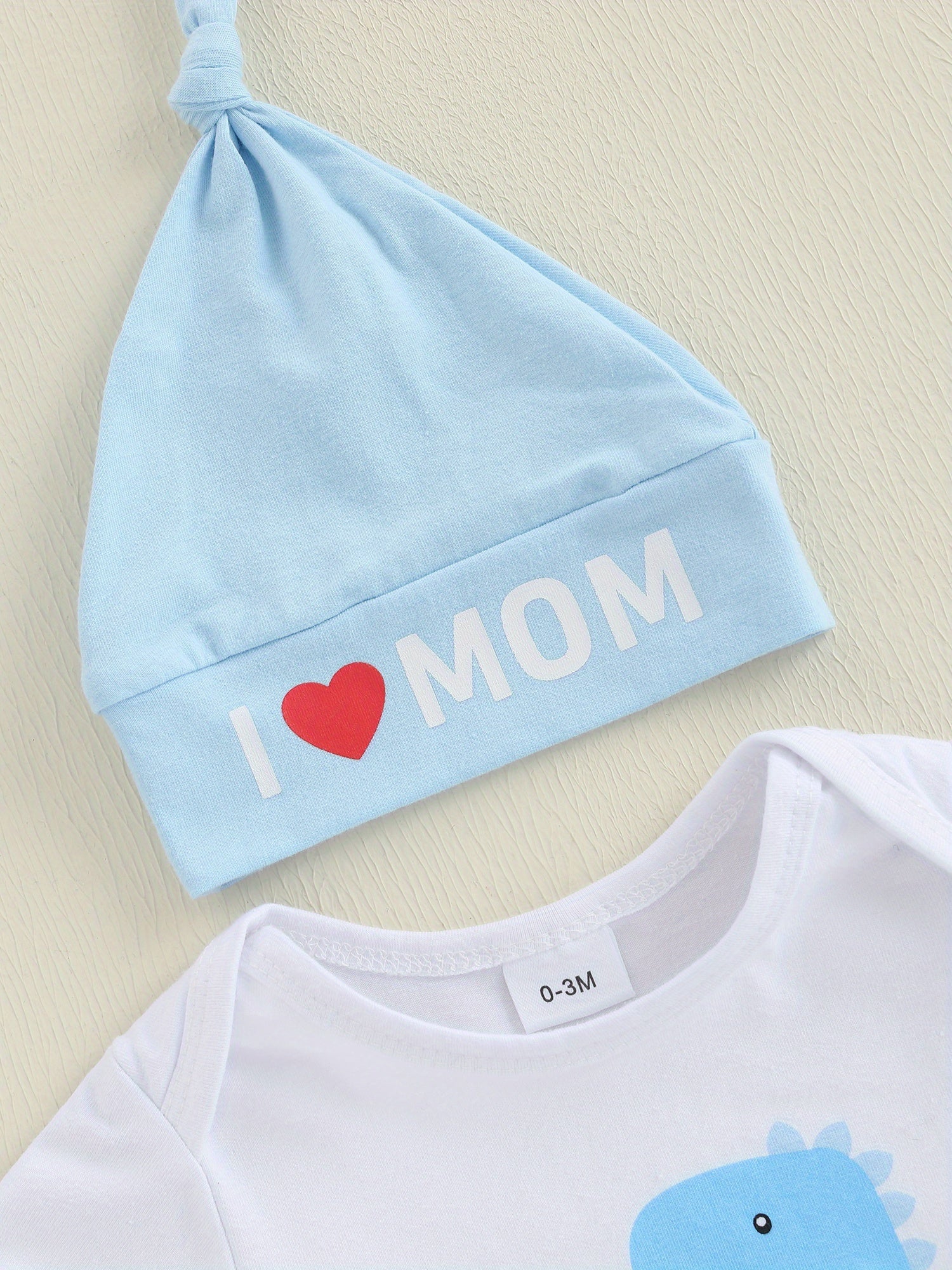 3pcs Newborn Baby Summer Outfit Dinosaur Elephant Romper Long Pants Hat Set