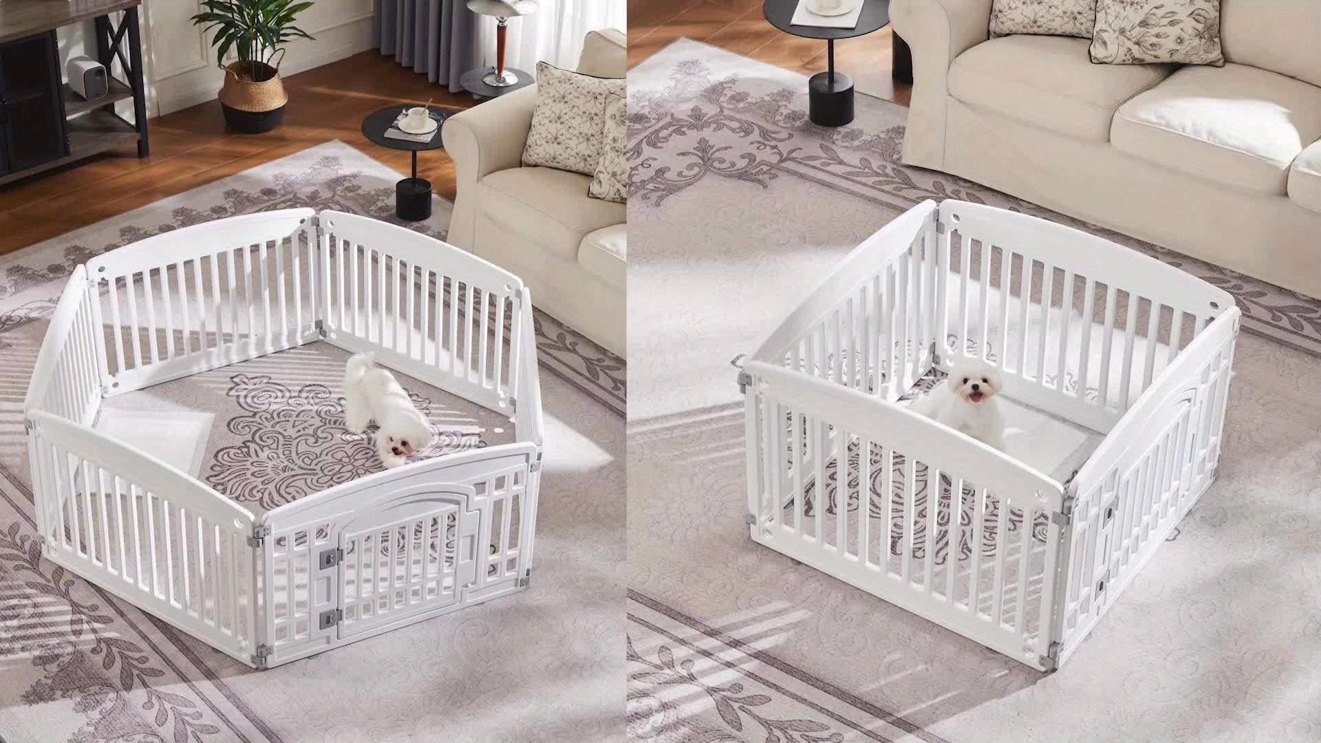Introducing the Durable 4 Panel Plastic Pet Playpen with a lockable door and a non-slip bottom, designed specifically for both indoor and outdoor use. This versatile pet playpen is perfect for pet parents who want to give their furry friends a safe, spacious area to play and relax while ensuring peace of mind. Crafted from high-quality PVC plastic, this playpen promises durability and longevity, making it an excellent choice in the pet supplies category.