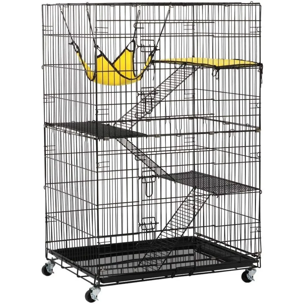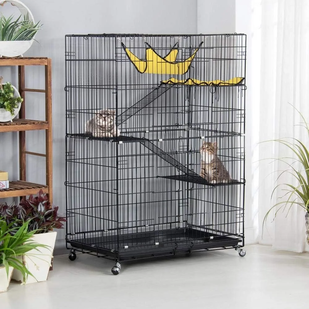 Purrfect Pet 4-Tier Foldable Cat Home Cage – Spacious Design with Leopard Hammock Bed