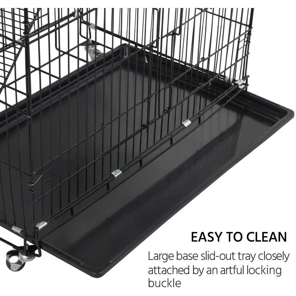 The standout feature of this cat home is the leopard hammock bed, providing a cozy resting spot your cats will adore. The breathable materials allow for proper airflow, ensuring that your pets stay comfortable even during warmer days. With the added convenience of wheel casters, moving this crate around your home is effortless, making it easy to create the perfect environment for your pets wherever they are.