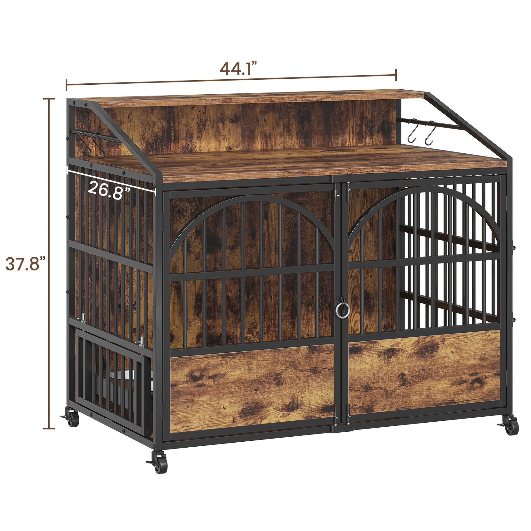 Introducing the 44 Inch Heavy Duty Metal Dog Crate Furniture with a stylish wooden top, specifically designed for large dogs. This spacious crate not only serves as a secure haven for your furry friend but also enhances your home decor with its elegant finish. Crafted from durable metal, this crate ensures long-lasting use while providing a comfortable environment for your pets.