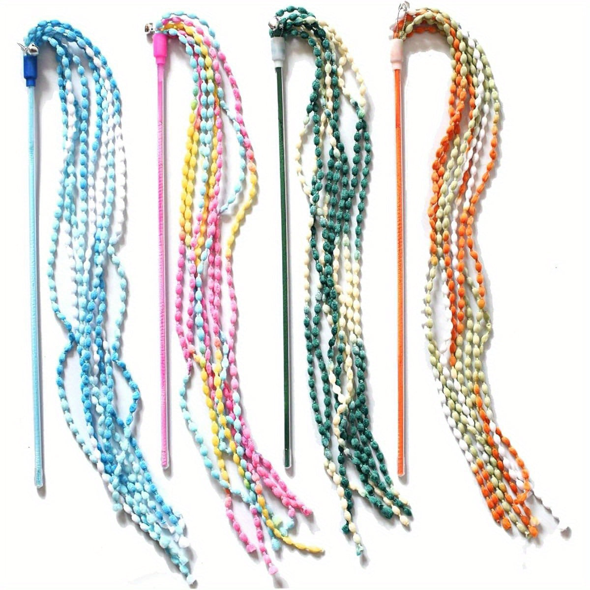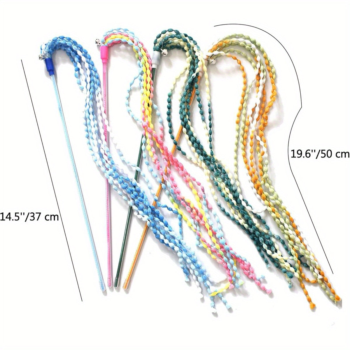 4 Pack Interactive Cat Wand Toys with Plush Teasers Bells and Ribbons for Indoor Play