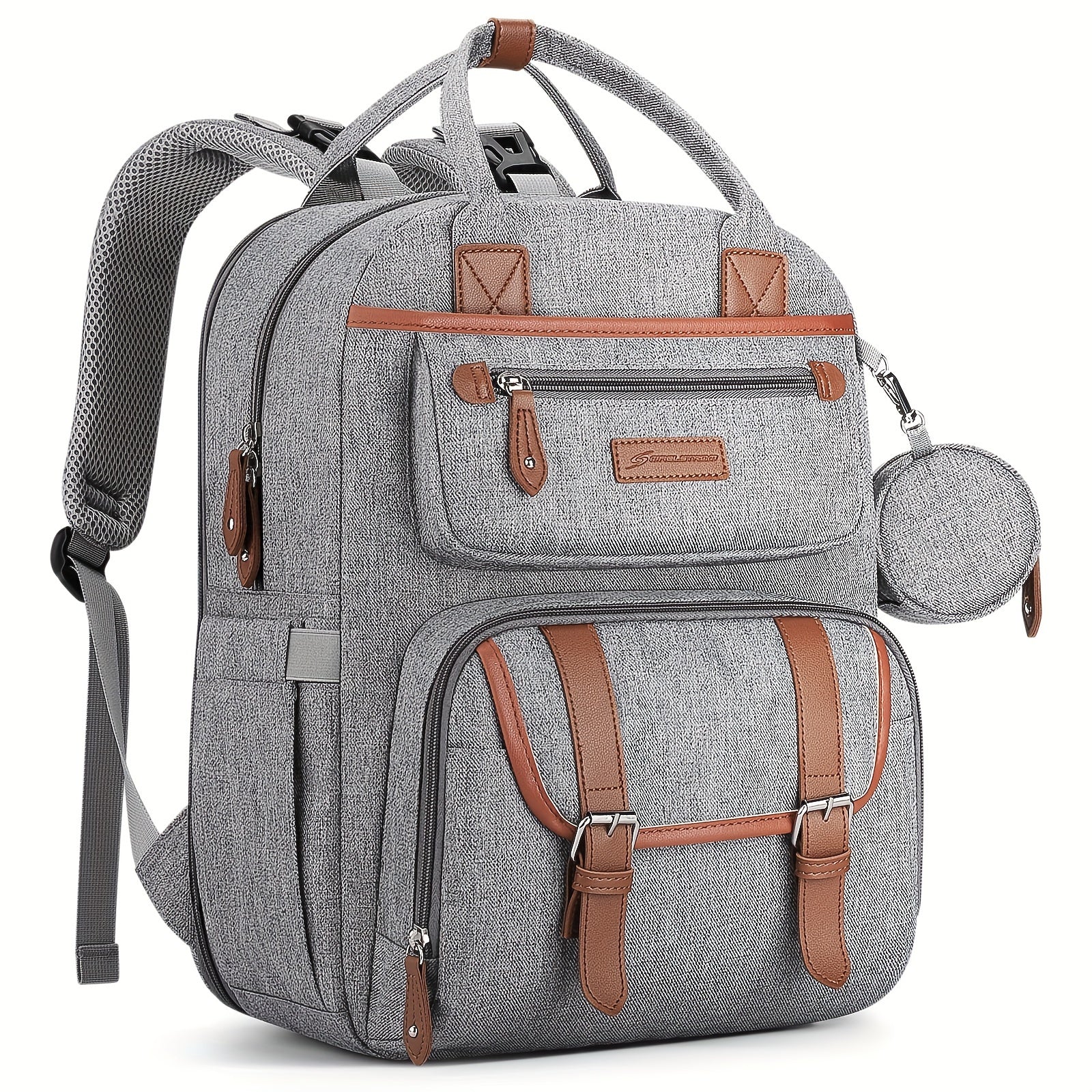 Expandable Diaper Backpack for Moms and Dads with Changing Pad and Stroller Straps Grey