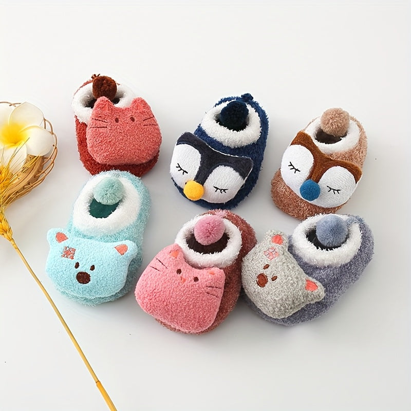 6 Pairs of Baby Cartoon Animal Non-Slip Socks, Indoor Anti-Slip Boat Socks for Children.