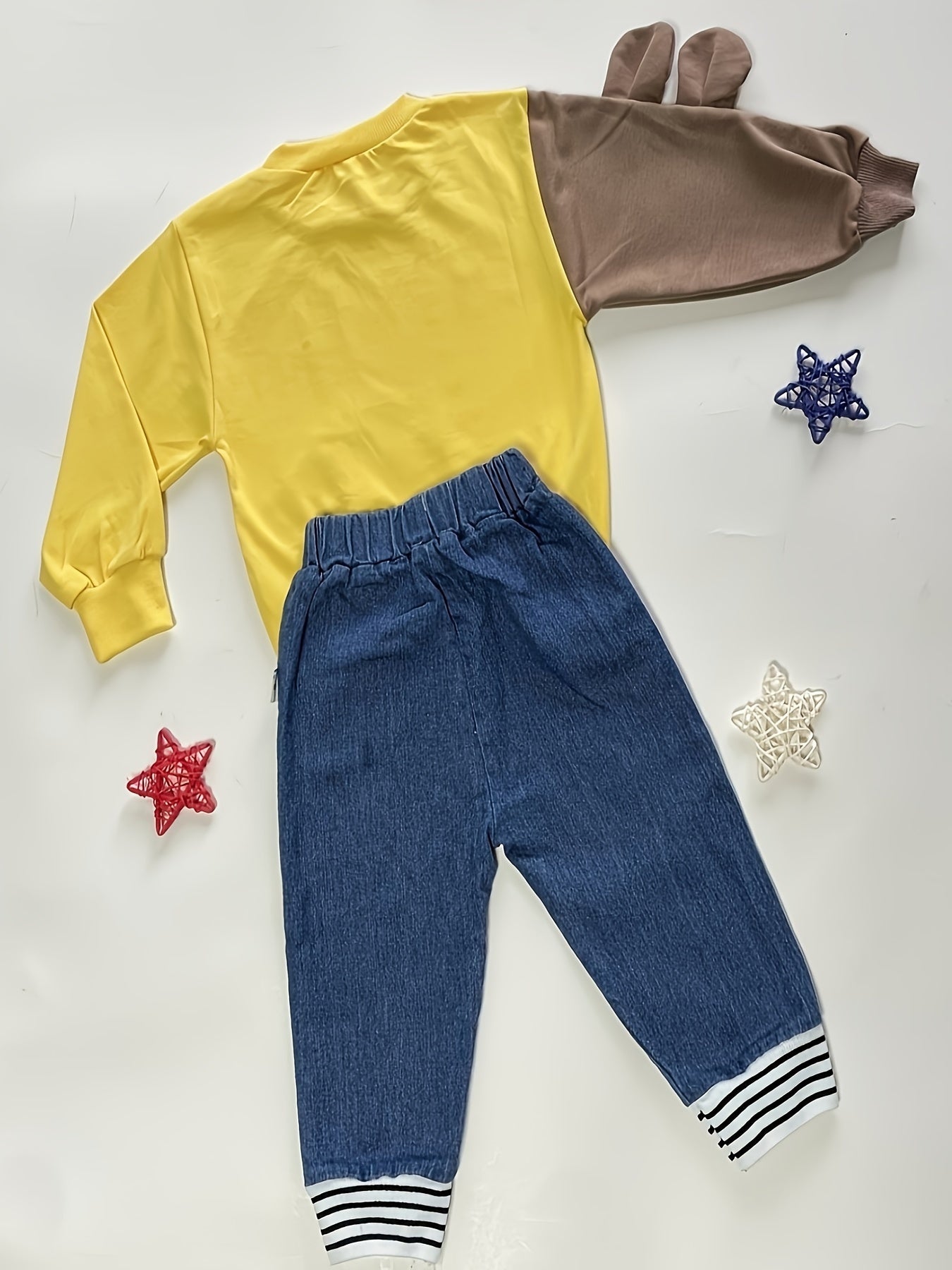 This comfortable and breathable clothing set is perfect for active toddlers, offering a loose fit that allows for unrestricted movement during play. The crew neck collar style adds a classic touch, while the slight stretch in the fabric accommodates growing bodies. Plus, it's machine washable for easy care—simply toss it in the wash and let it air dry!