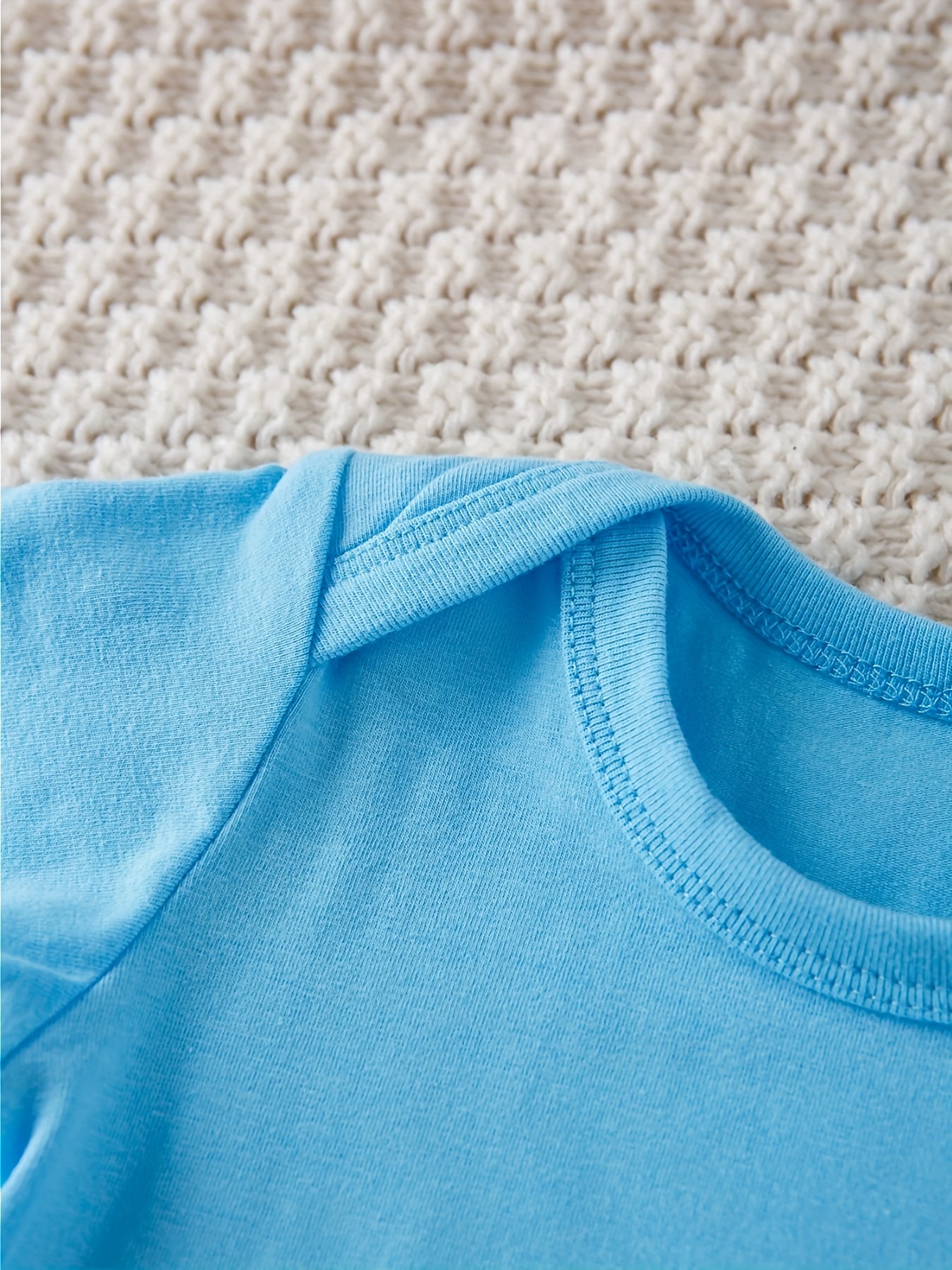 This romper features a crew neck collar style and a slight stretch for ease of movement, ensuring your baby can crawl, play, and explore without any restrictions. The regular fit makes it suitable for everyday wear, whether it's a family outing or a day at home.