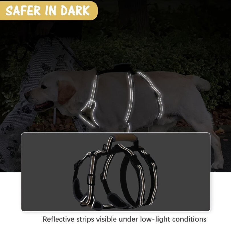 Adjustable No-Pull Dog Harness with Handle - Escape Proof, Soft Padded, Reflective Full Body Vest for Medium and Large Dogs, Ideal for Walking, Hiking, and Training, Beige, Escape-proof, Safety Vest