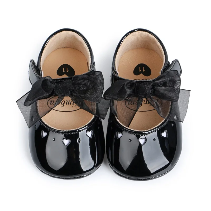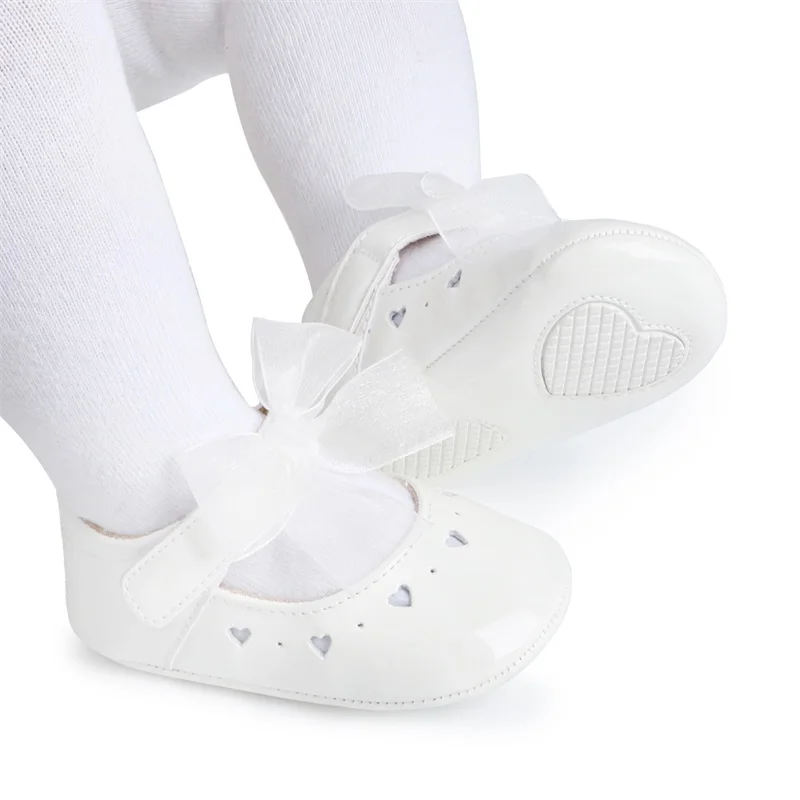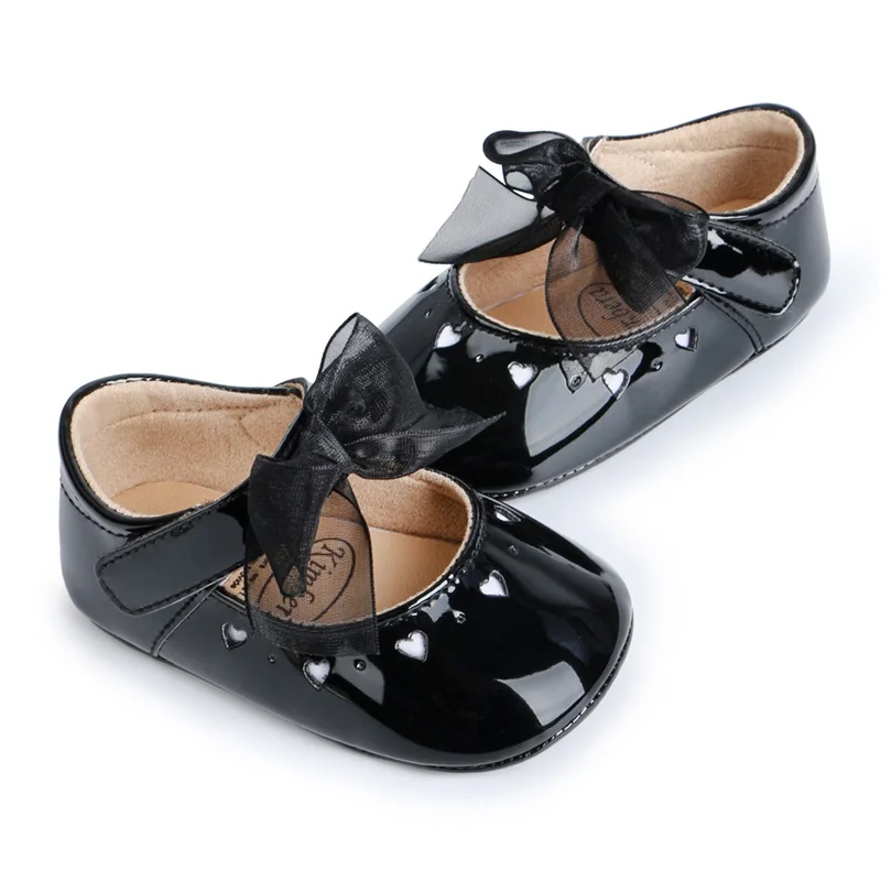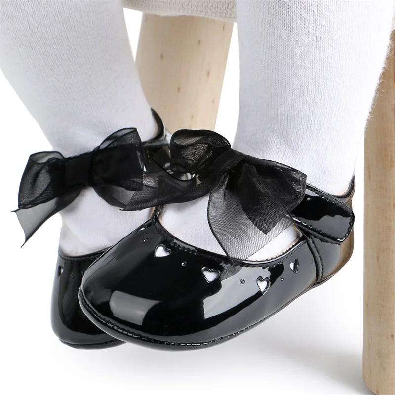 Baby Girls Mary Jane Flats Cute Heart Cutout Dress Shoes Non-Slip Newborn Crib ShoesFeatures: