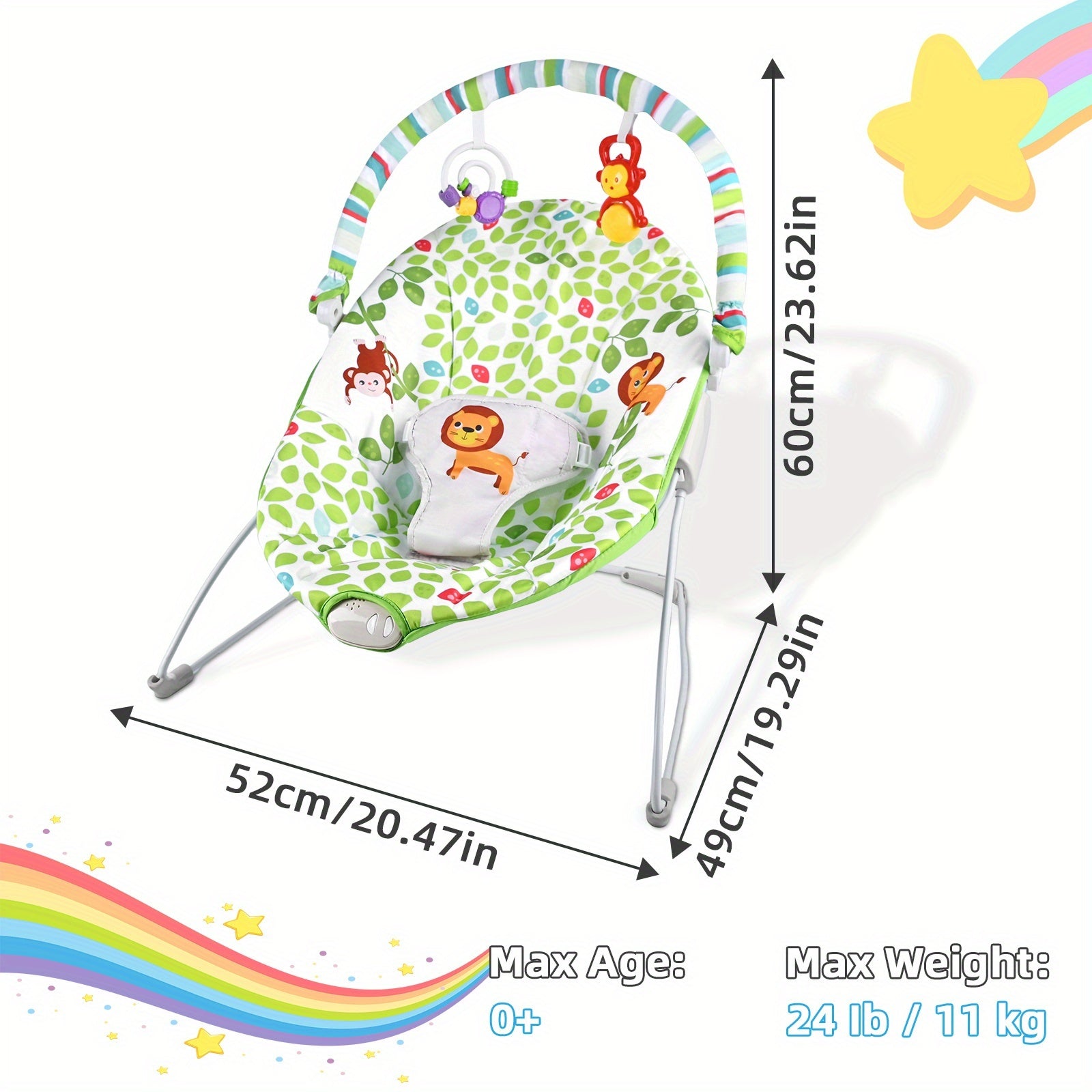 Baby Bouncer Seat with Soothing Vibration Toys & Animal & Geometric Patterns - Adjustable Straps, Breathable Mesh, Portable Design for Indoor/Outdoor Use - Unisex Infant Learning & Development, Indoor Play Seat, Playful Desig