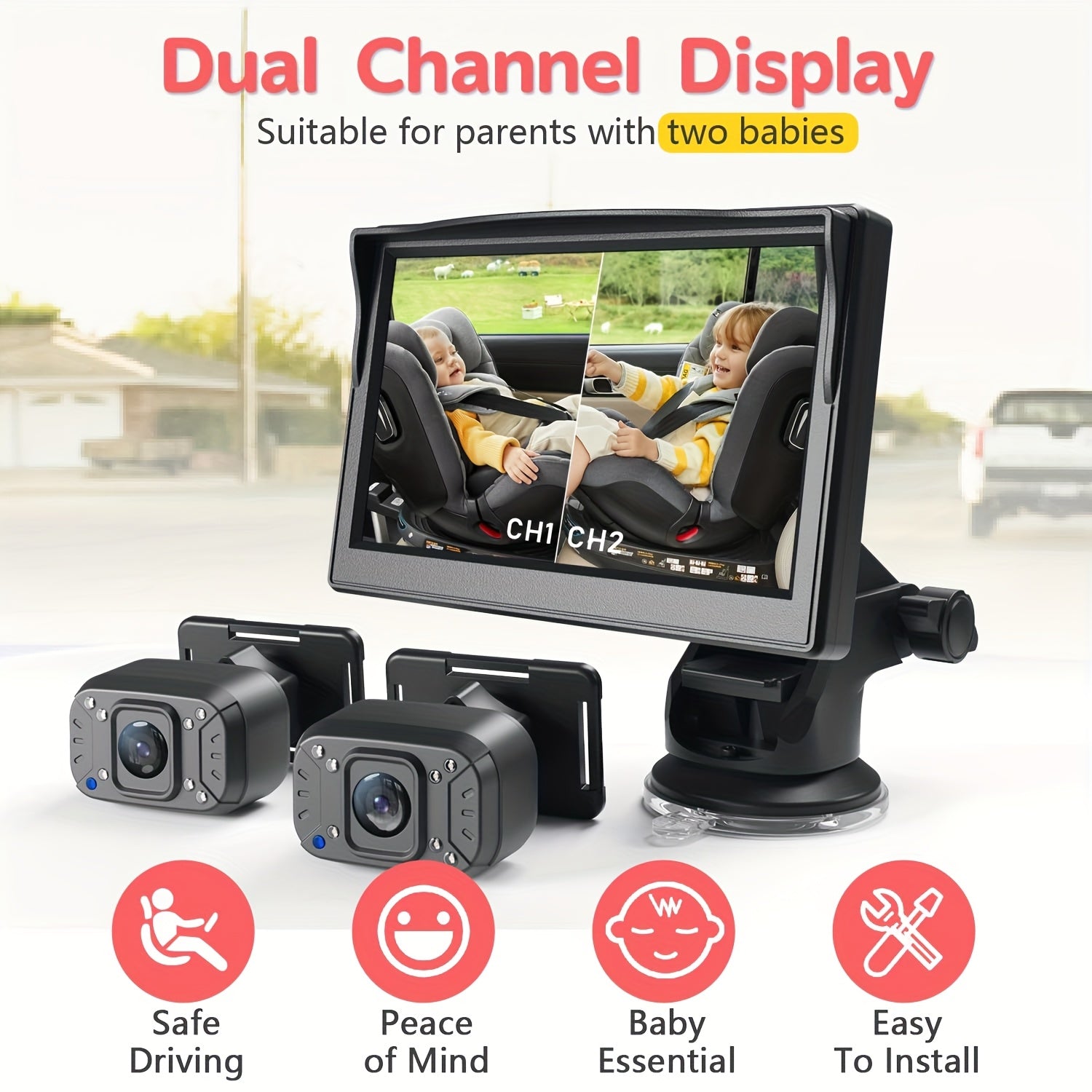 Baby Car Camera Dual Channel 5 Inch Display 1080P Clear Night Vision for Rear Facing Seat