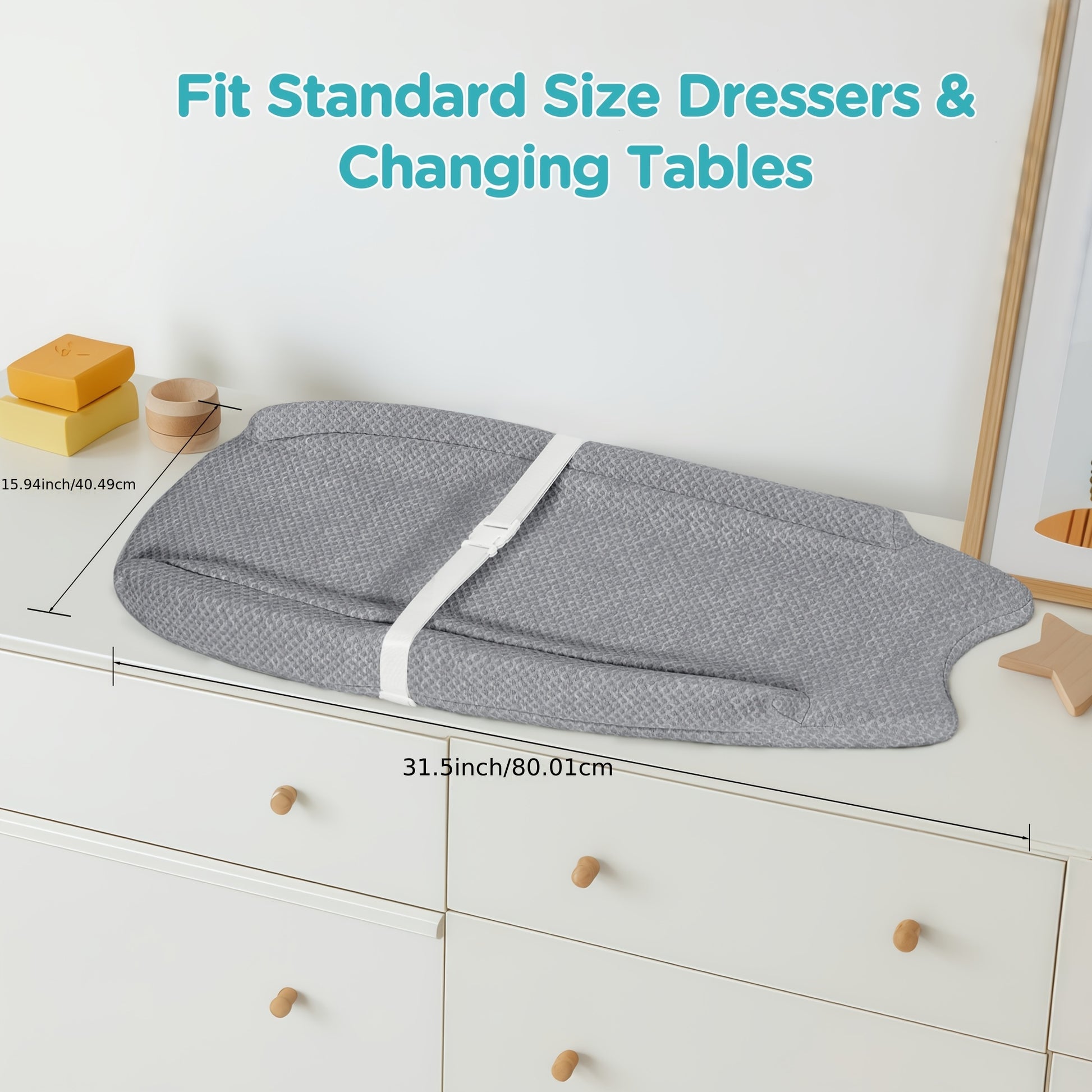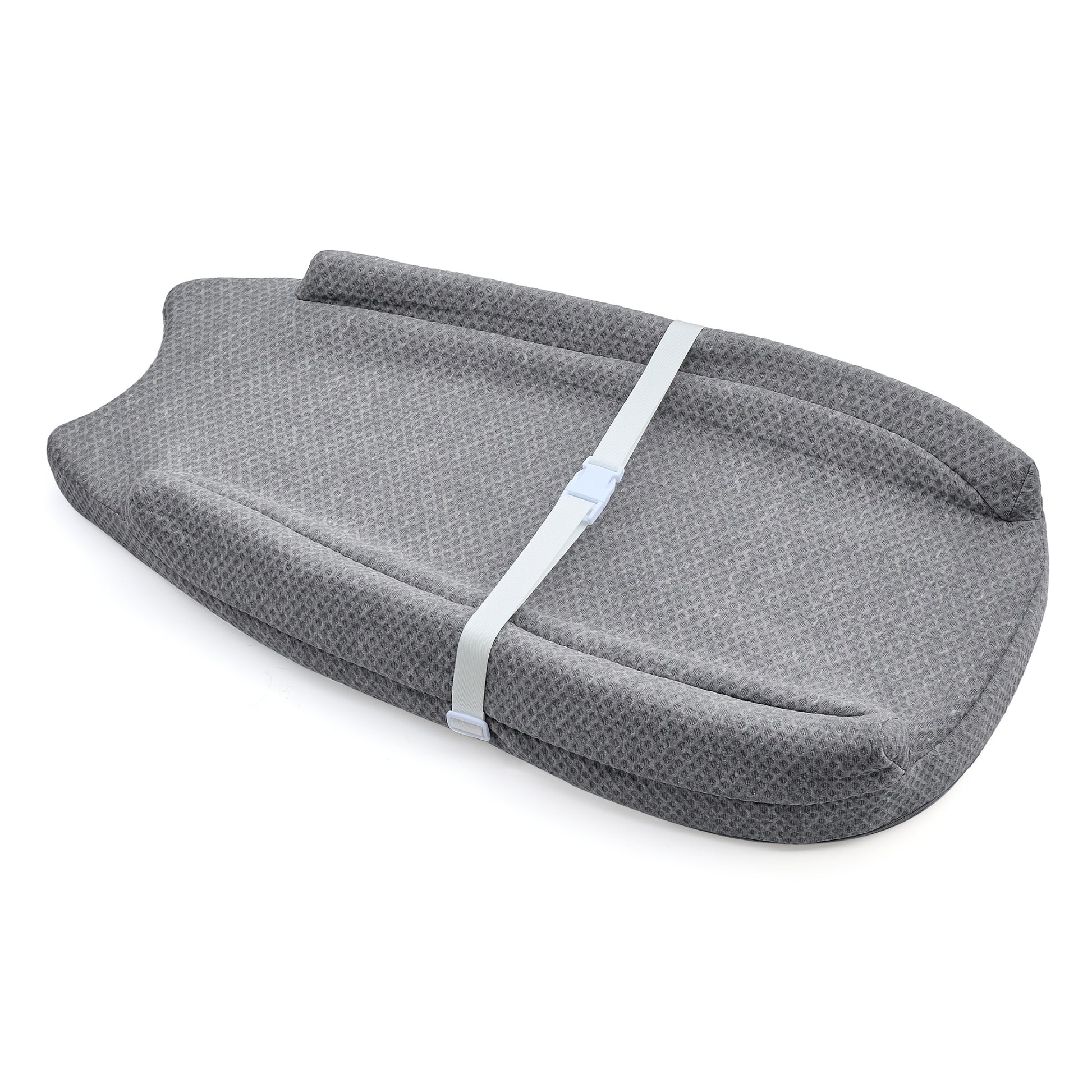 Baby Changing Pad with Safety Strap Non-Slip Base Machine Washable Grey Comfort Cushion