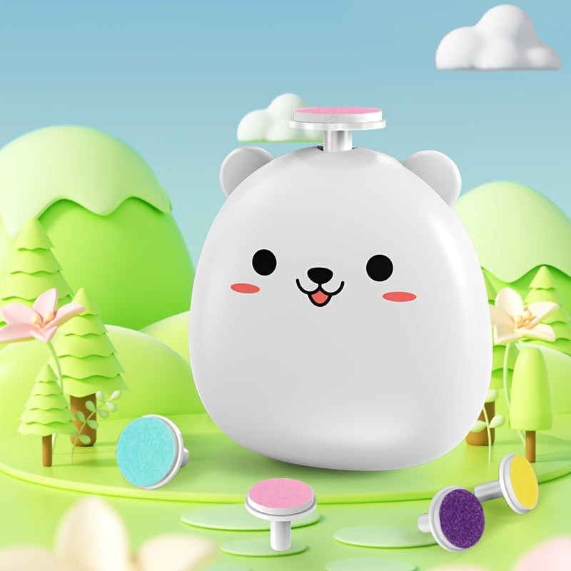 Baby Electric Nail Grinder with Bear Shape Rechargeable Quiet Portable 8 Grinding Heads