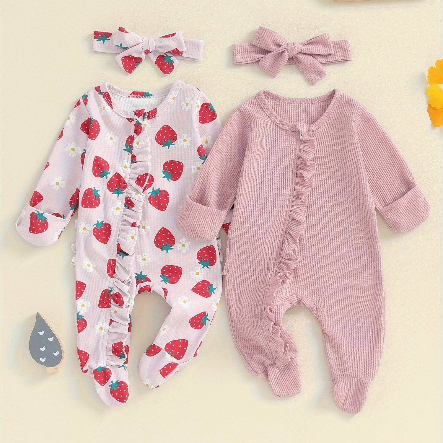 Baby Girls Long Sleeve Frills Jumpsuit Headband Footies