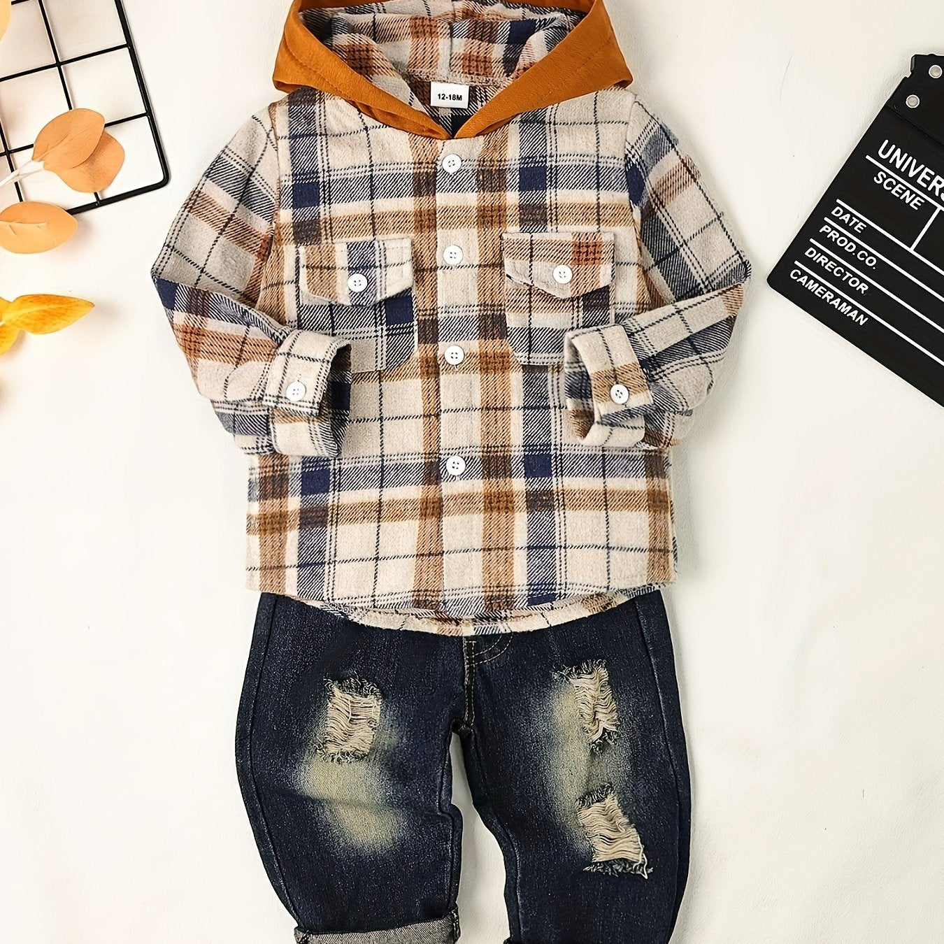 Elevate your little one's wardrobe this fall and winter with our Toddler Boy Fall Winter Outfit Set, featuring a cozy hooded sweatshirt and trendy ripped jeans in a chic dark khaki color. Designed for boys aged 12 months to 5 years, this outfit set combines style and comfort, perfect for any playful adventure.