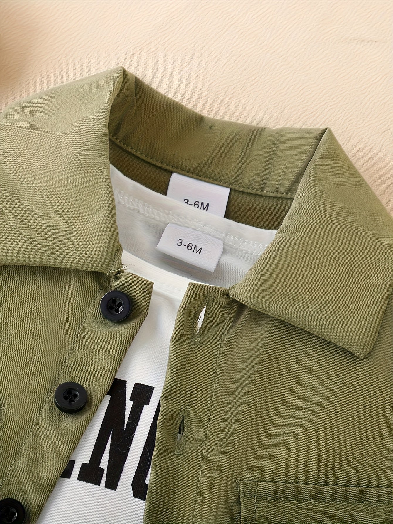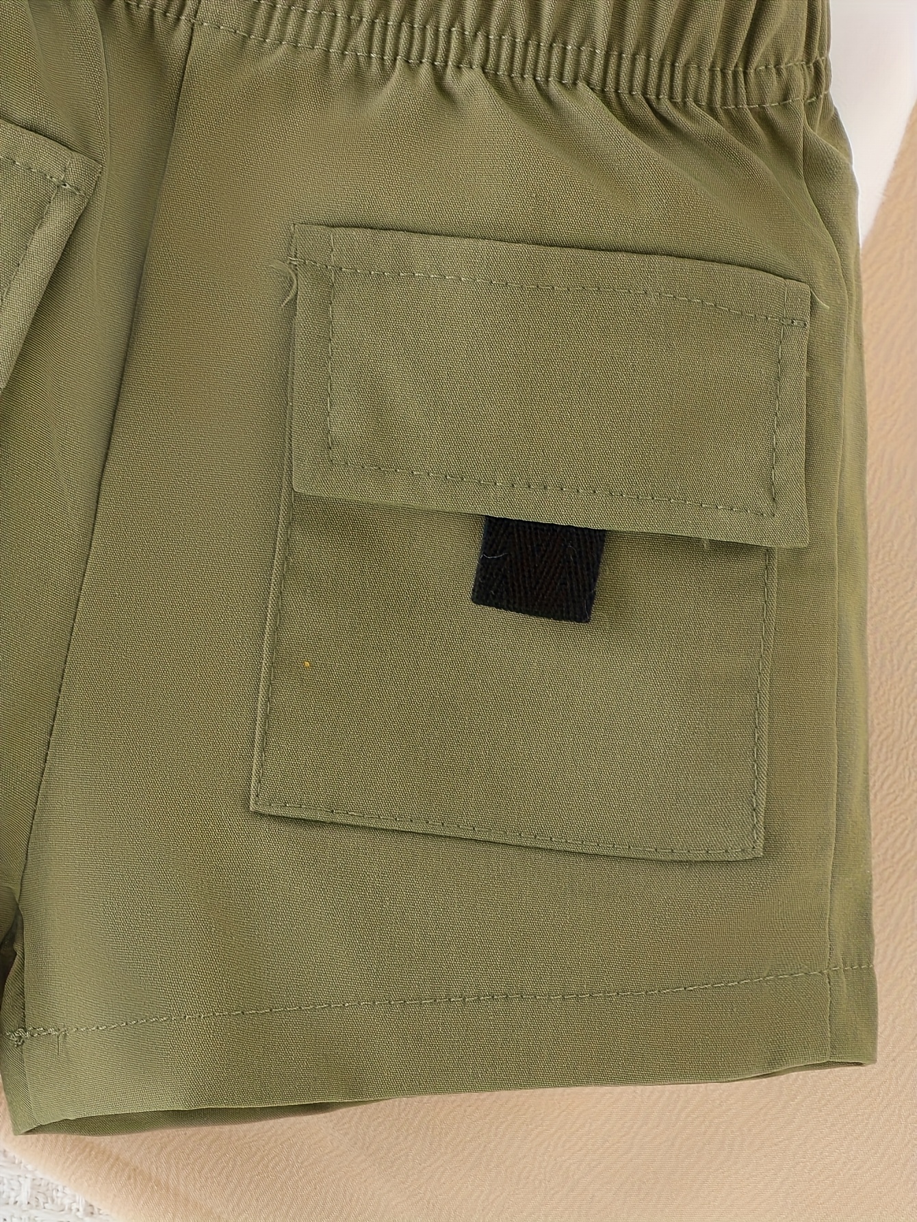 Boys' Summer New Casual Cargo Green Top & White T-Shirt & Versatile Green Shorts Three-Piece Set, for Outdoor, Perfect for Outdoor