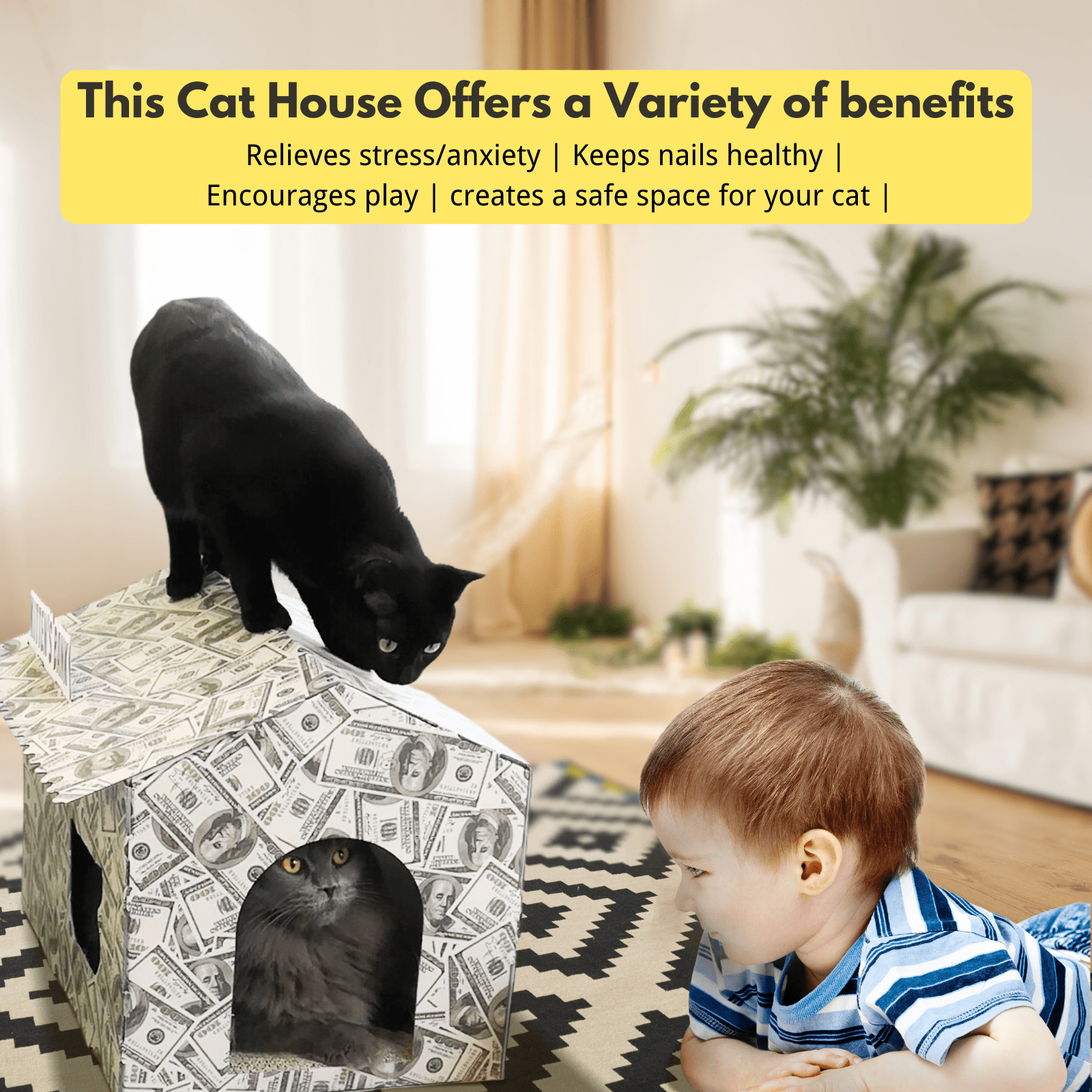 Don't wait any longer! Treat your precious pet to the ultimate indoor playhouse experience that promotes healthy habits and endless enjoyment. Order your Cardboard Cat House with Scratch Pad today!