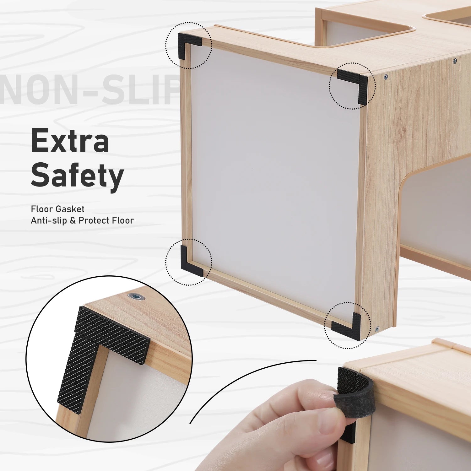 Cat Bed with Two Large Condos Scratching Pad Detachable Scratcher Wooden Cat Condo House with Plush Mats Cat Furniture Cat Toys