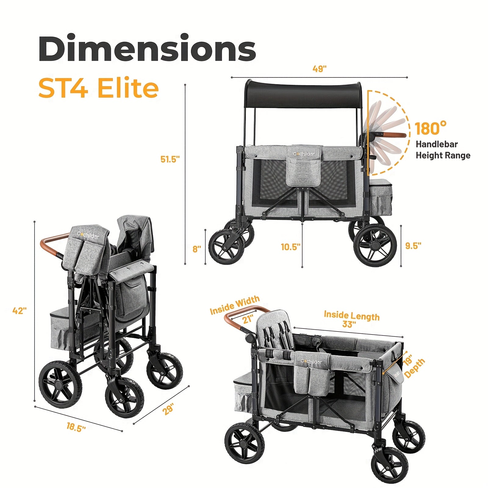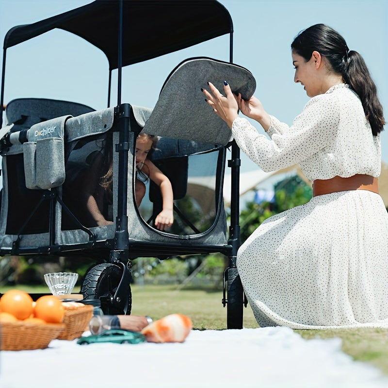 Cochildor Lightweight High Landscape Quadruplets Stroller (4 Seater), Collapsible Wagon Stroller with Seats, Adjustable Push Handle, And Removable UV Sun Canopy, Oversized Storage Basket, Baby Items Suitable for Shopping, Pic