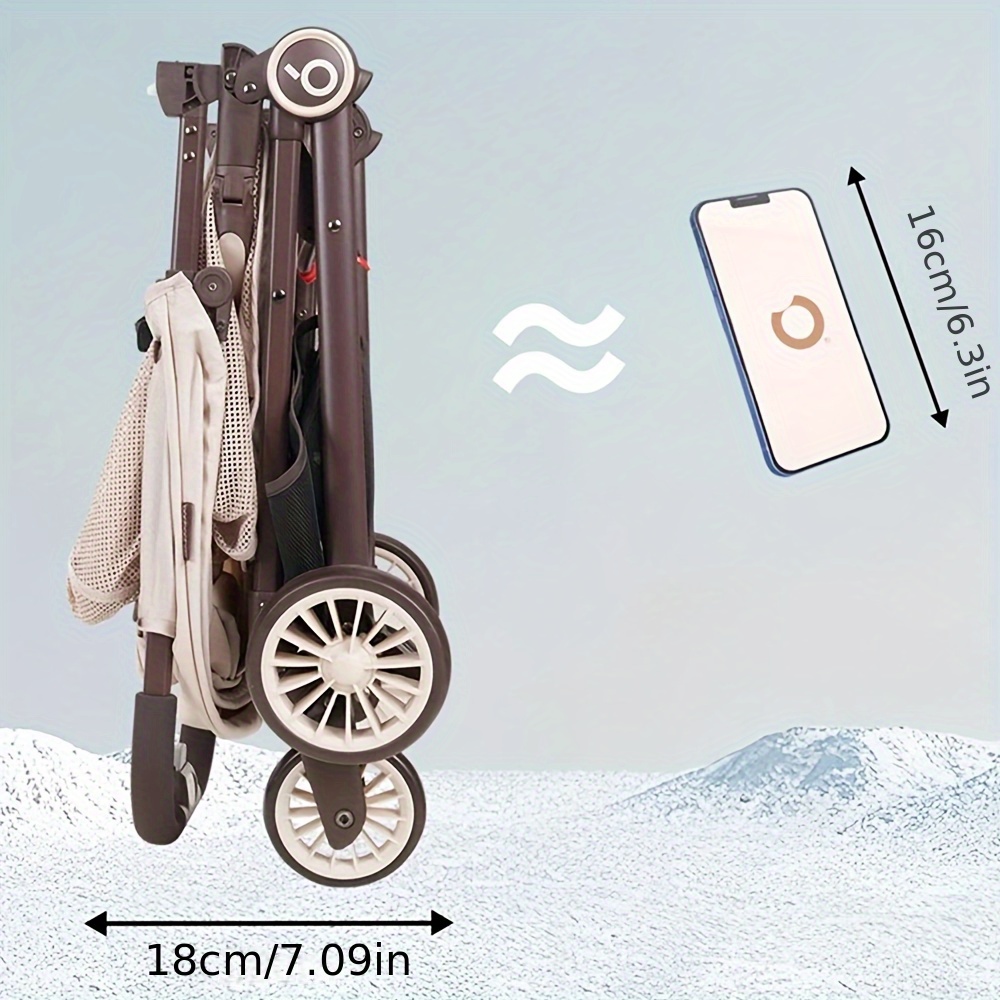 Compact Travel Stroller - Lightweight, Quick Fold, One-Click Operation, Beige & Brown Design, Anti-Skid Wheels, Large Capacity Basket, Portable Stroller for On-the-Go Parents, Durable Metal Frame, Compact Stroller