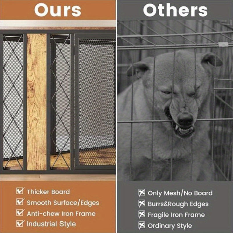 This large decorative wood kennel stands out in the crowded pet furniture market by offering a seamless blend of aesthetics and functionality. Unlike traditional dog crates, the Stylish 66 Inch Corner Dog Crate not only provides a secure space for your pets but also serves as a beautiful piece of furniture that enhances your living area.