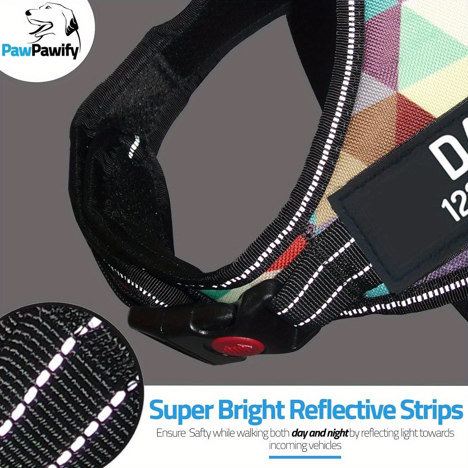Customizable Polyester Dog Harness with Name & Phone Number, No-Pull Design, Daisy Pattern, Hand Wash Only, for Training & Walking