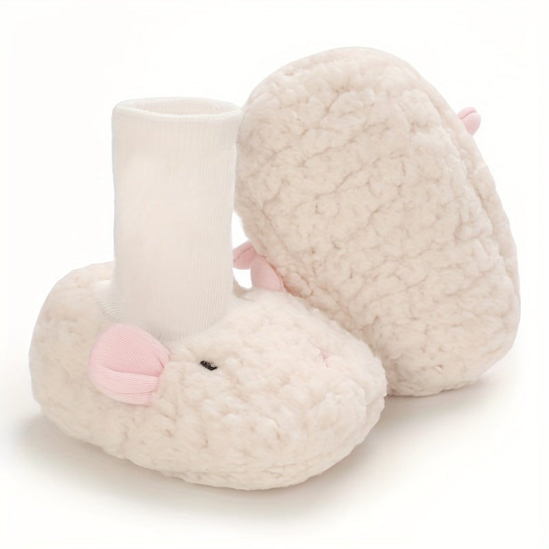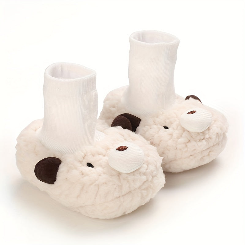 Cute Cartoon Animal Sock Shoes for Newborns, Warm Fleece-Lined Slip-On Footwear, Fabric Upper/Inner/Sole, Casual Street Style, with Sewing Thread Detail, for Indoor & Daily Use, Fall/Winter Season, Baby Shoes