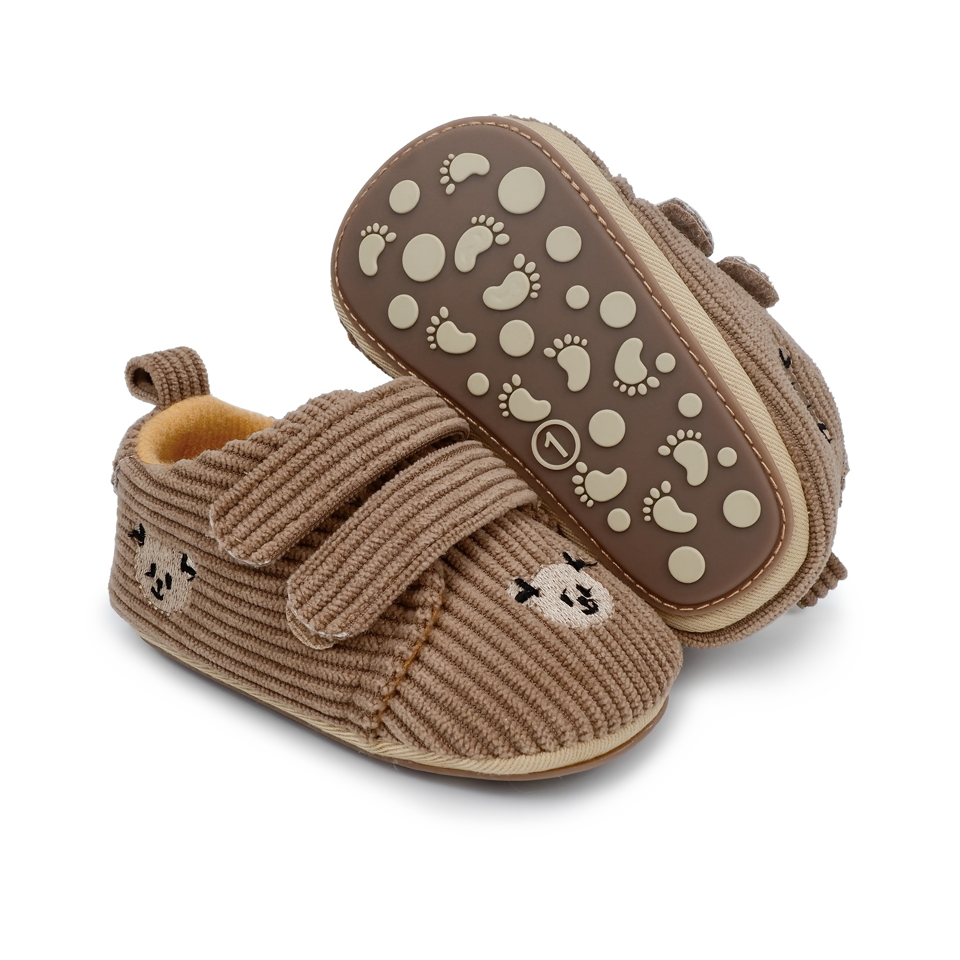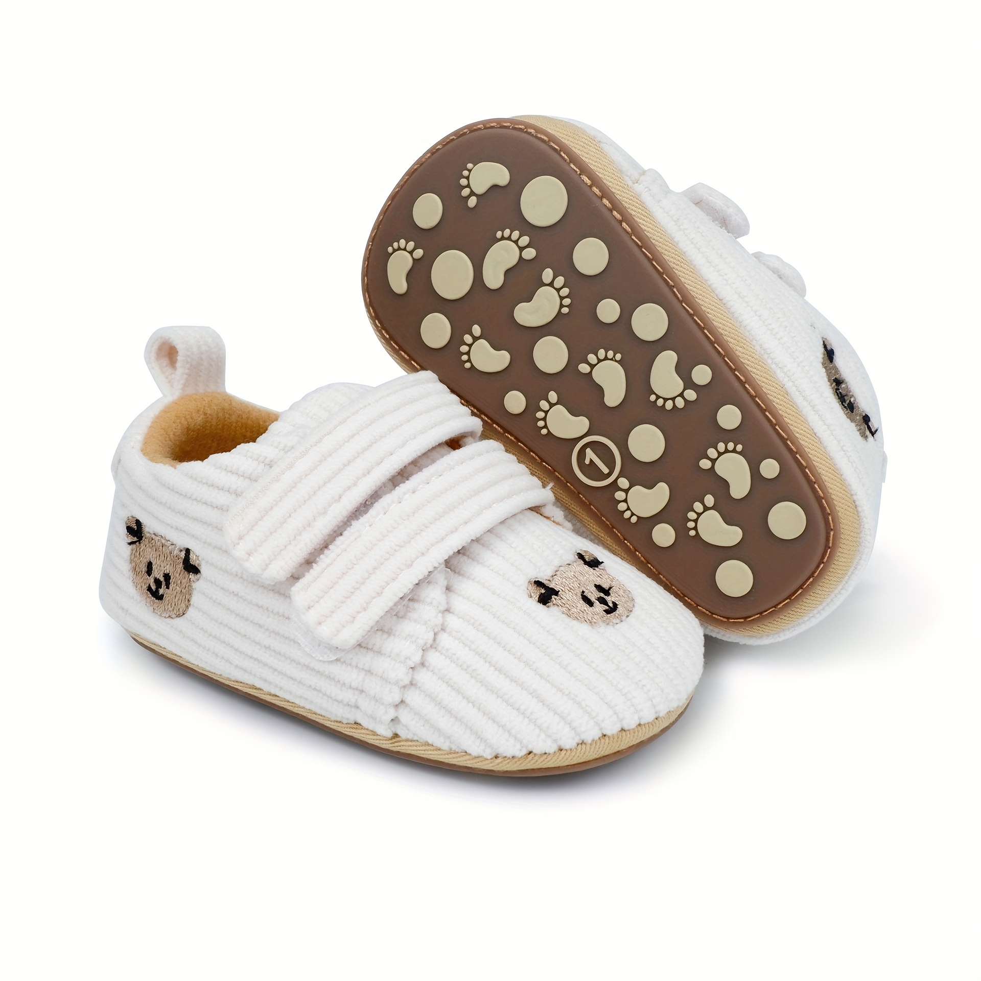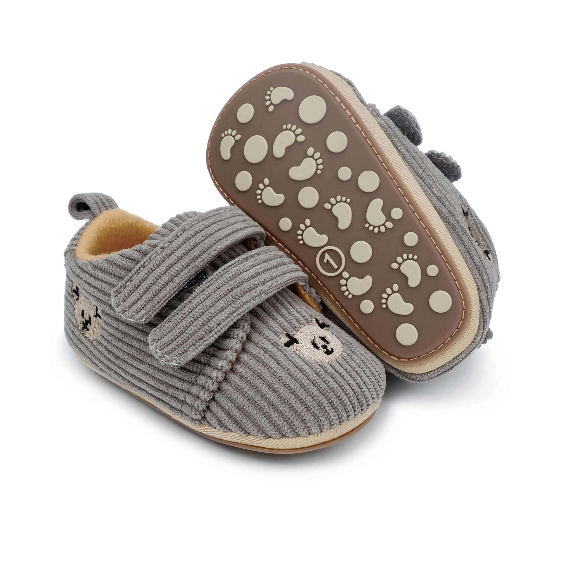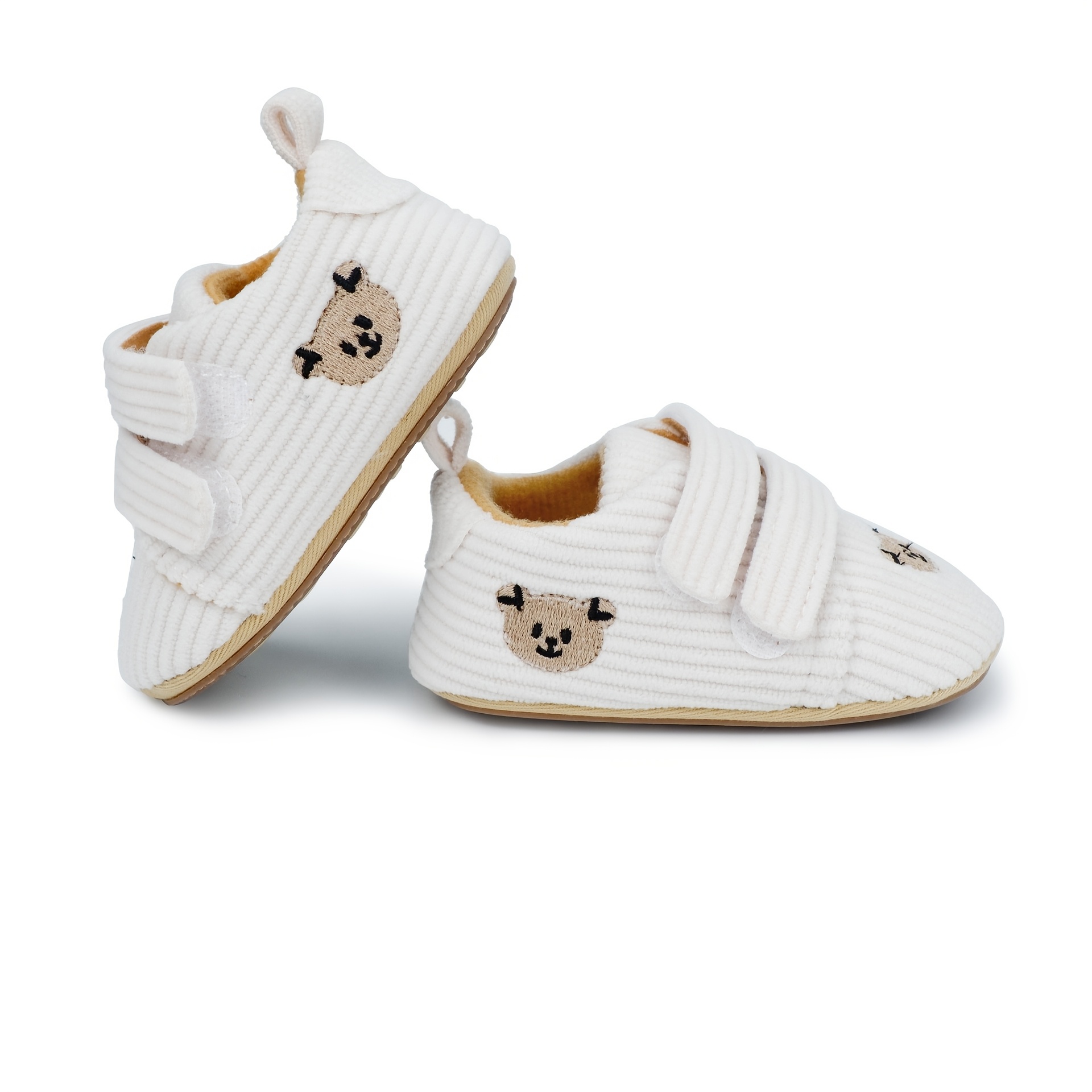 Cute Cartoon Bear Toddler Shoes for Boys & Girls - Soft Fabric with Non-Slip Rubber Sole, Hook-and-Loop Closure, Low-Top Design for Spring & Autumn, 0-18 Months Infant & Toddler Footwear