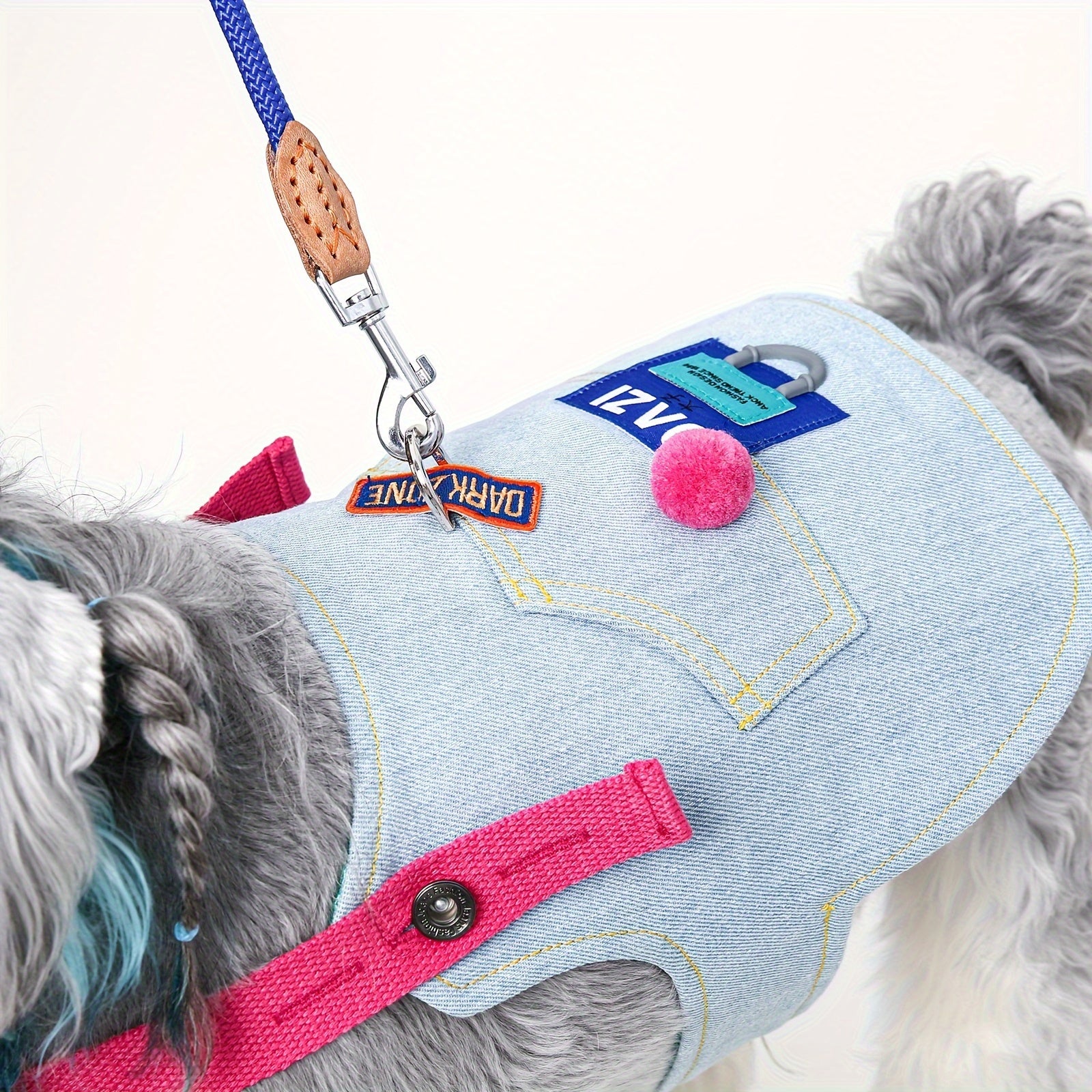 Dazi Adjustable Denim Dog Harness and Leash Set for Small Dogs No Pull No Choke