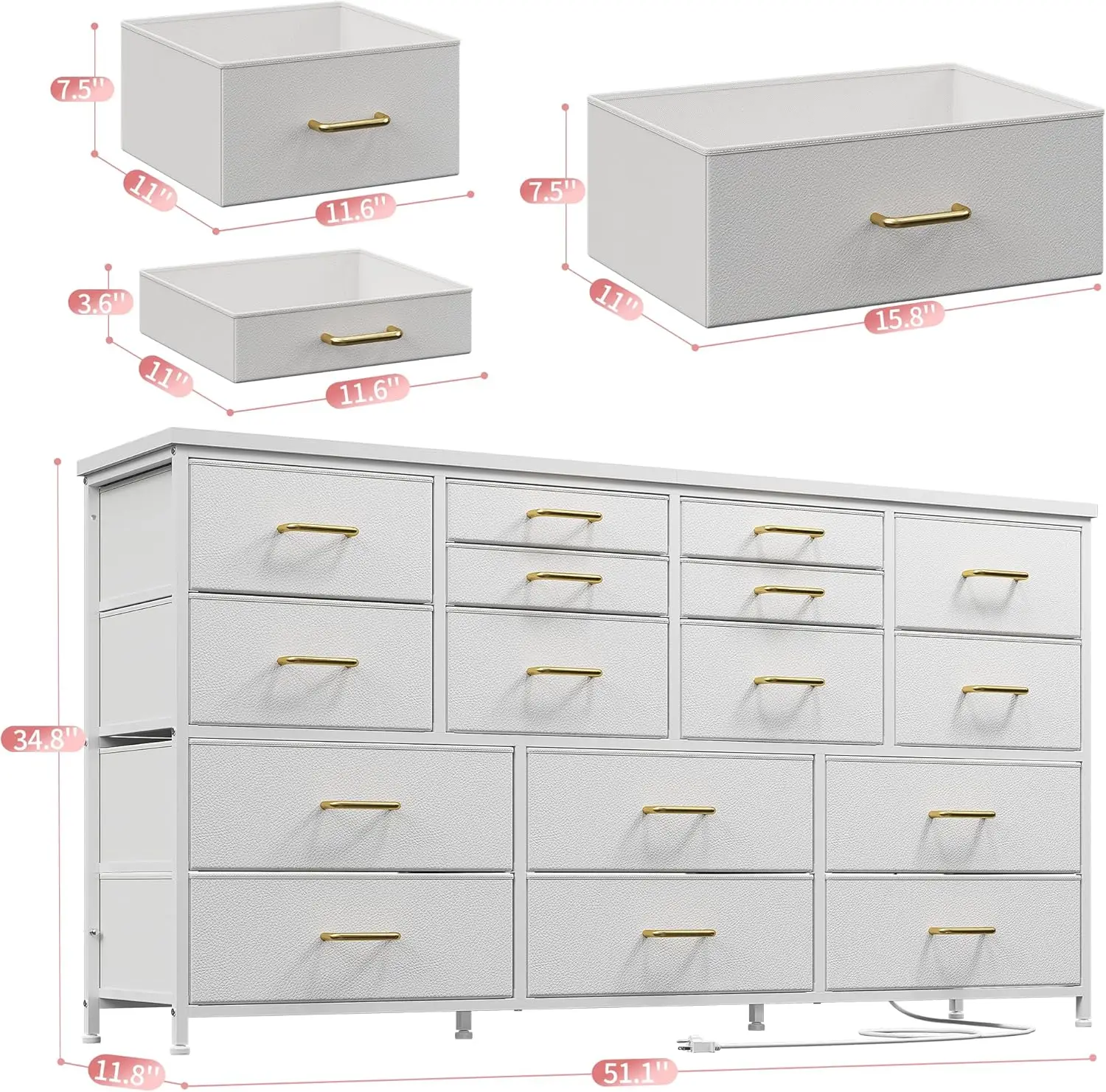 - 【Total load bearing 374 LBS, Solid & Stable】: Our dresser is extremely sturdy with total load bearing 374 LBS and the top panel capable of carrying up to 110 LBS. The 16 drawer dresser has stable and sturdy design that the bottom is equipped with a bearing column. It's safe enough to place art, decoration, TV or daily necessities on the top of the dresser. Practical dresser gives you a convenient life