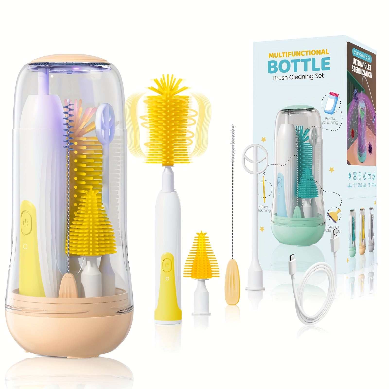 Portable Electric Baby Bottle Brush Set with Silicone Brushes and Travel Storage Box