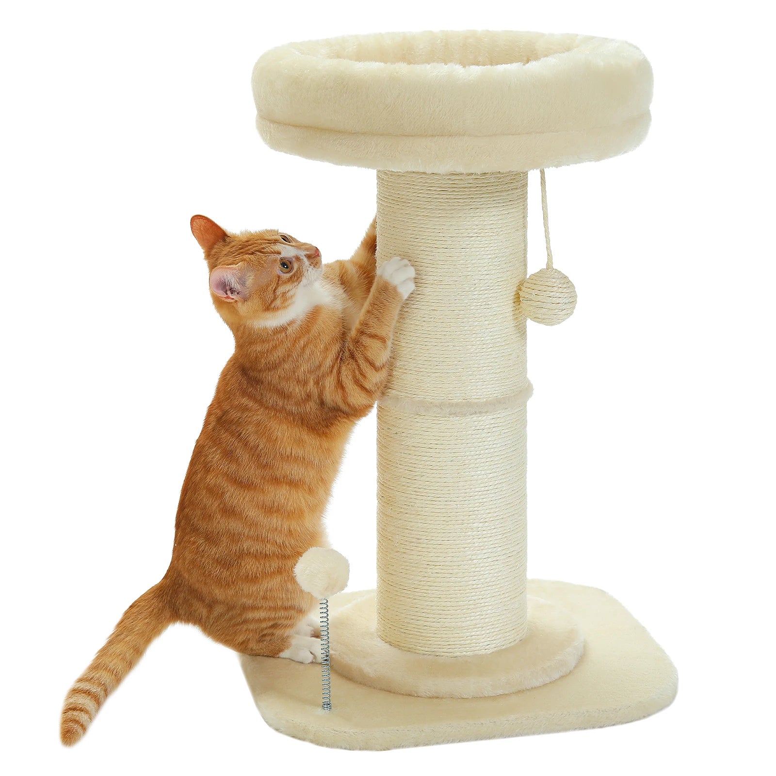 2.SUPER THICK POST: The natural sisal covered post's diameter reaches to 14cm that is larger than almost 80% cat scratcher, ensuring a large area for your cats to fulfill their daily scratching needs. Besides, this thick post double secure the stability of the whole cat scratcher, efficiently keep your baby away from your expensive furniture.