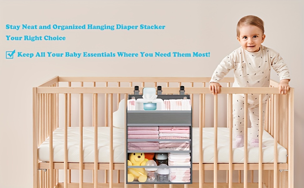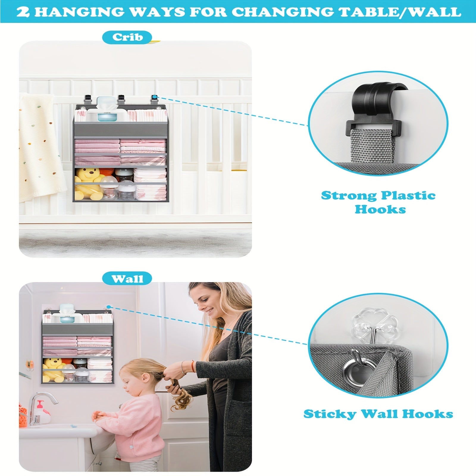 Hanging Diaper Caddy Organizer - Multiple Pockets, Baby Organizer For Nursery Accessories Changing Table Organizer And Diaper Storage - Gray - For New Parents - Suitable for Nursery, Bathroom & Changing Table - Perfect Gift f