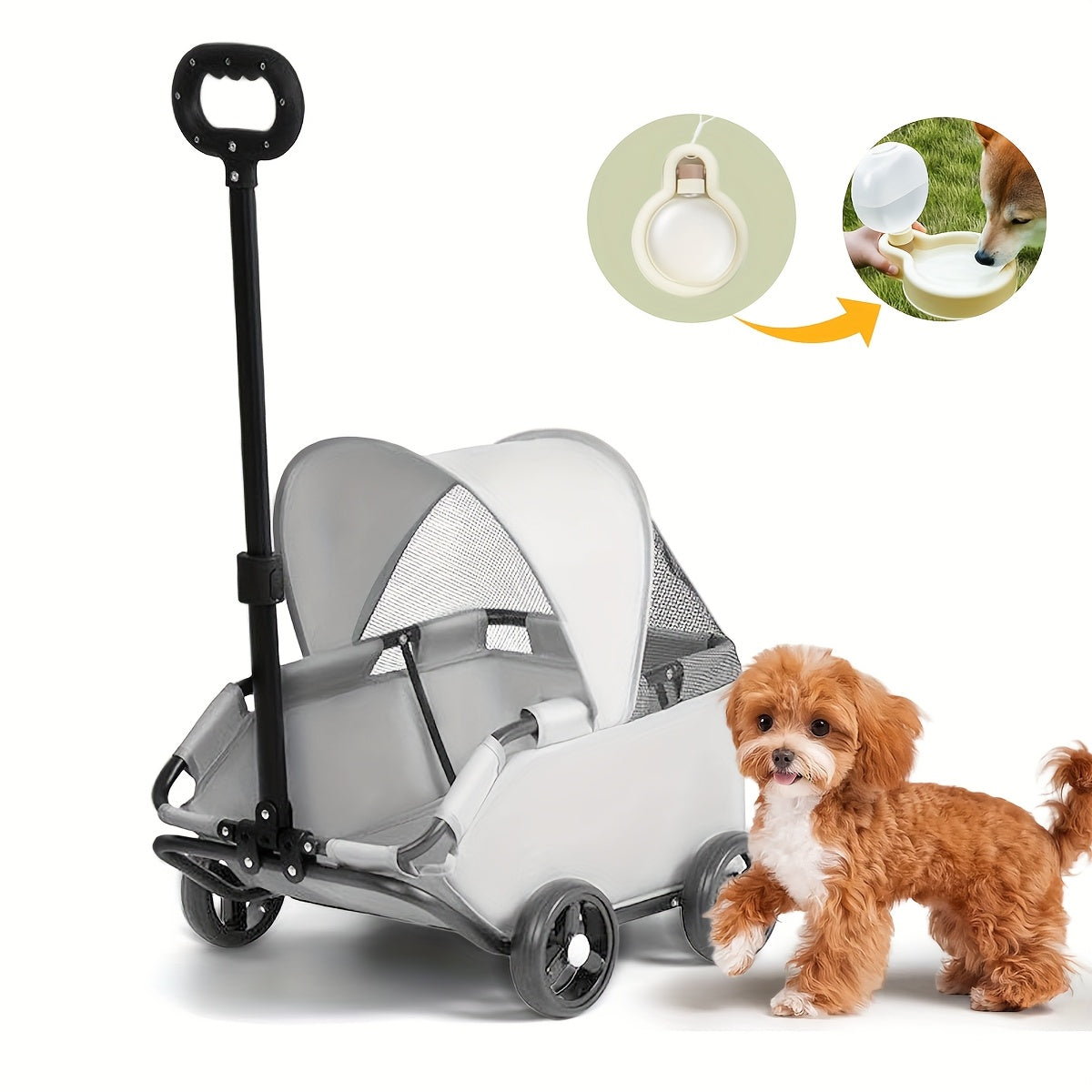 Heavy-Duty 4-Wheel Pet Stroller for Large Dogs, Small Pets, Cats - All-Season Foldable Carrier with Travel Water Bottle Holder, Removable Sunshade Canopy, Large Wheels for Rough Terrain - Durable Metal Frame & Oxford Fabric -