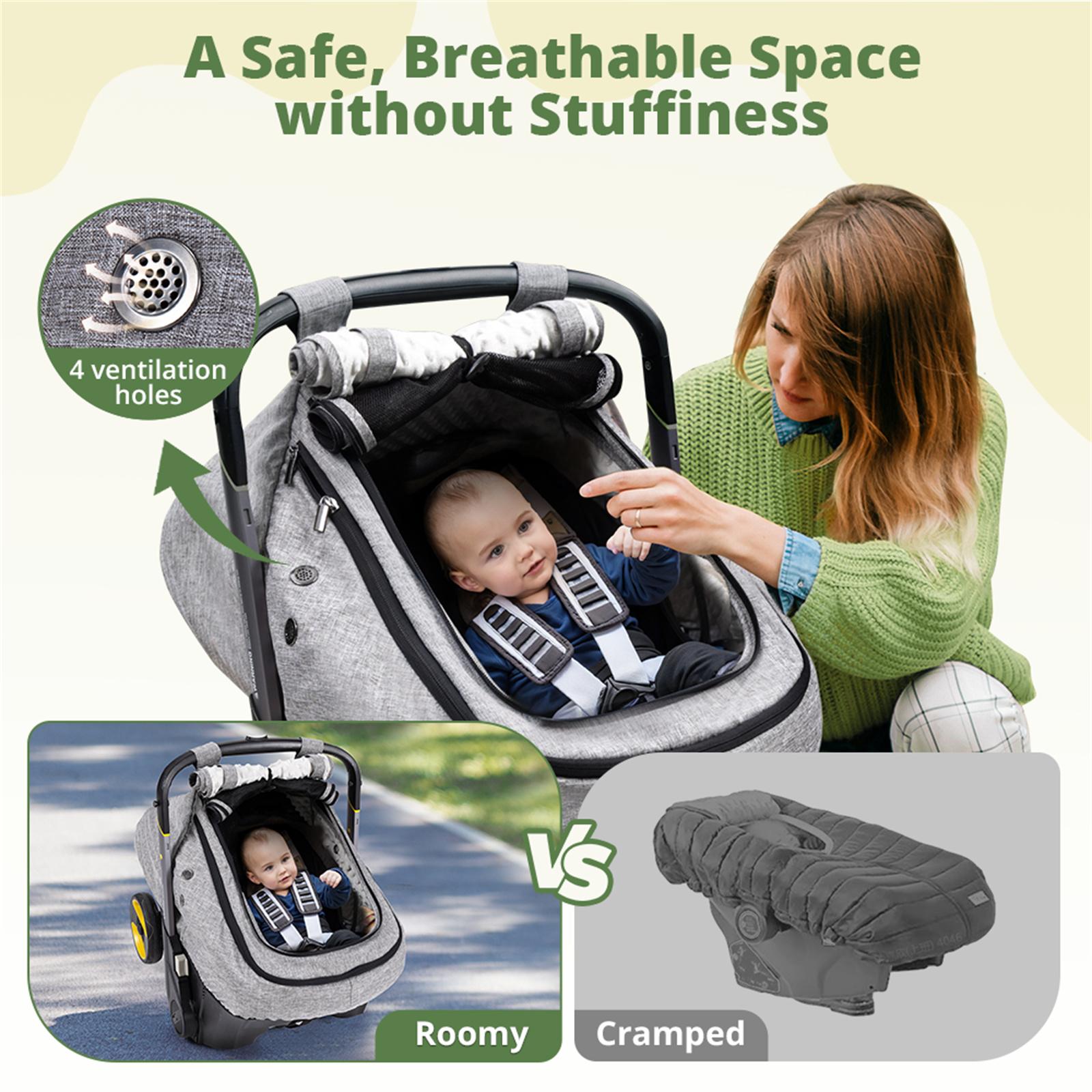 This versatile infant car seat cover is not just a protective shield; it also adds a touch of style to your car's interior. Its sleek design complements any setting while ensuring that your child's car seat remains protected from spills and dirt.