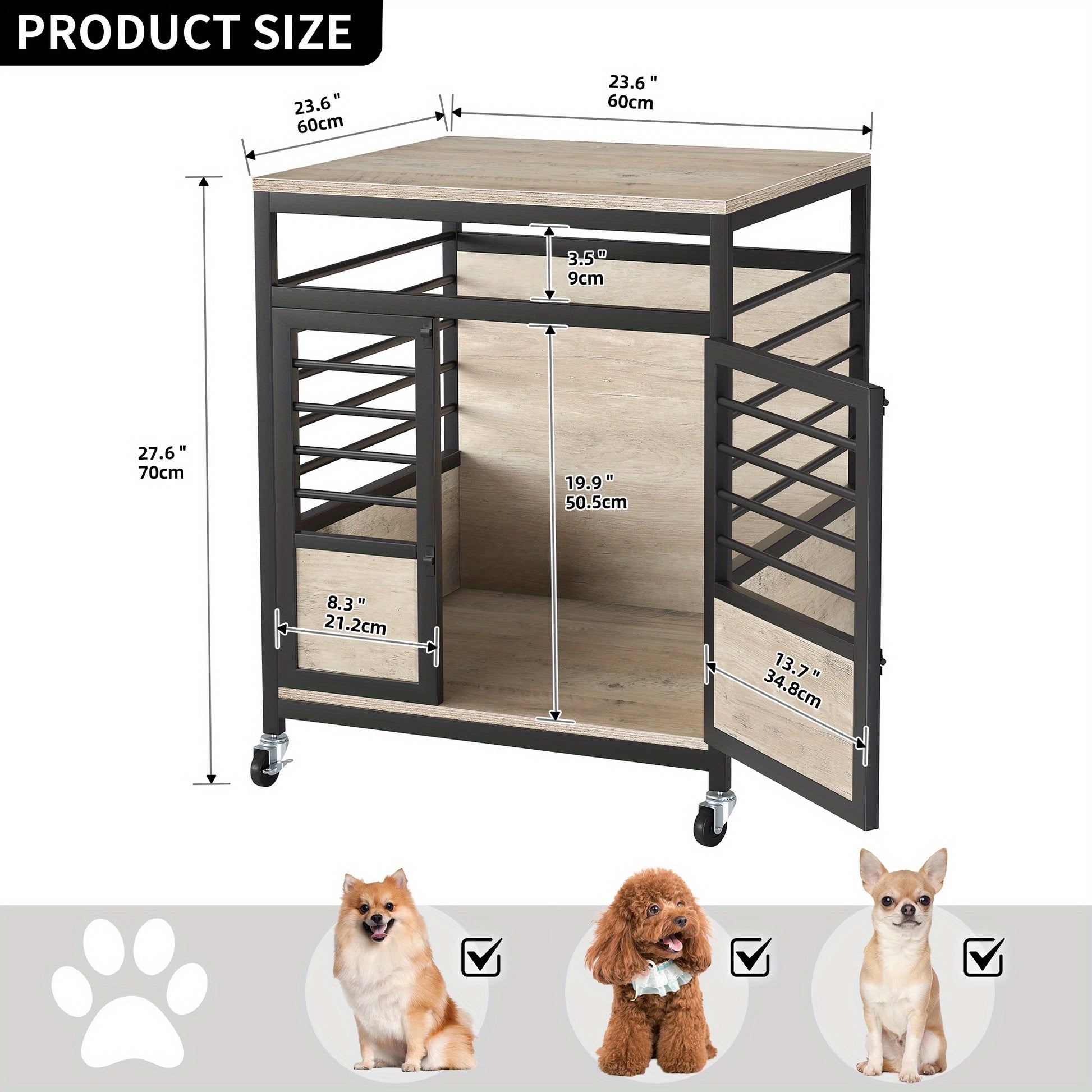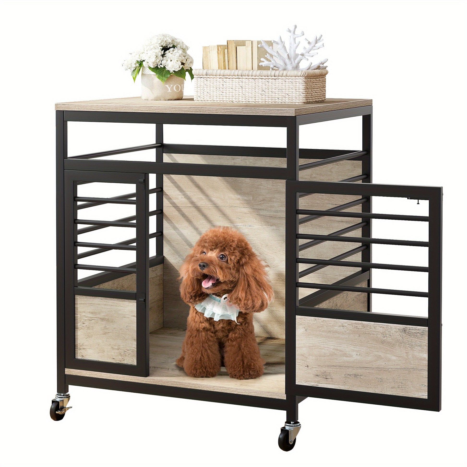 The Homshop Heavy Duty Dog Cage features a sleek brown and black color scheme that seamlessly blends into any room, whether it be your bedroom or living room. With its smart design that includes wheels, it allows for easy relocation without hassle. Measuring 23.6"L x 23.6"W x 27.6"H and weighing 42.77 pounds, this kennel is robust yet manageable, making it a go-to choice for pet owners.