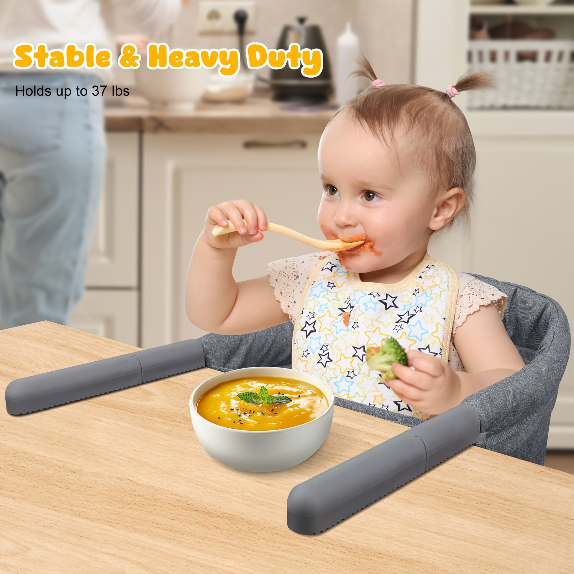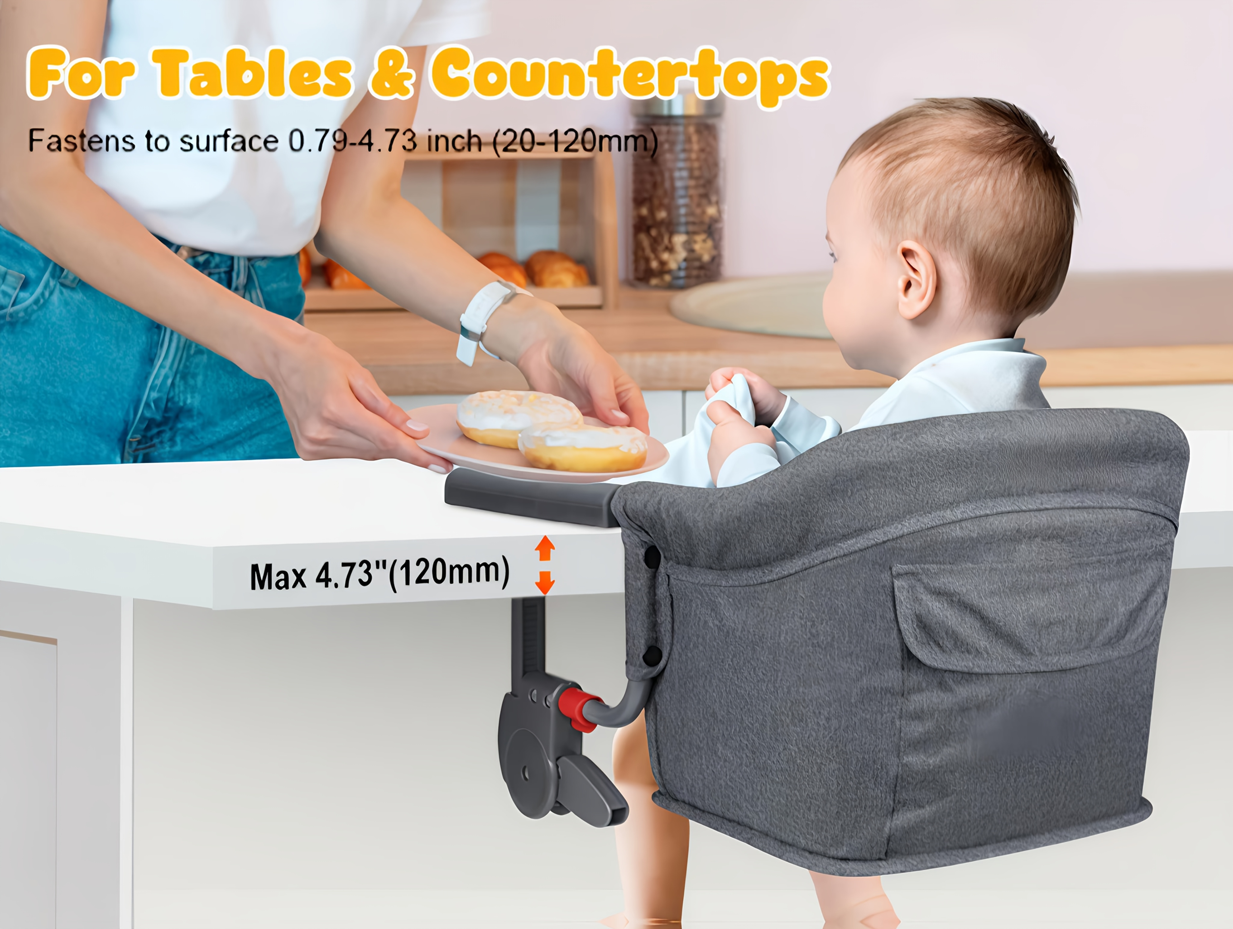 [Fits Most Tables & More Stable]: This baby high chair fits tables and countertops between 0.79" and 4.73" (20-120mm) thick. Ideal for small kitchens, crowded restaurants, or on-the-go use. It’s perfect for babies and toddlers aged 6 to 36 months and supports up to 37 pounds.