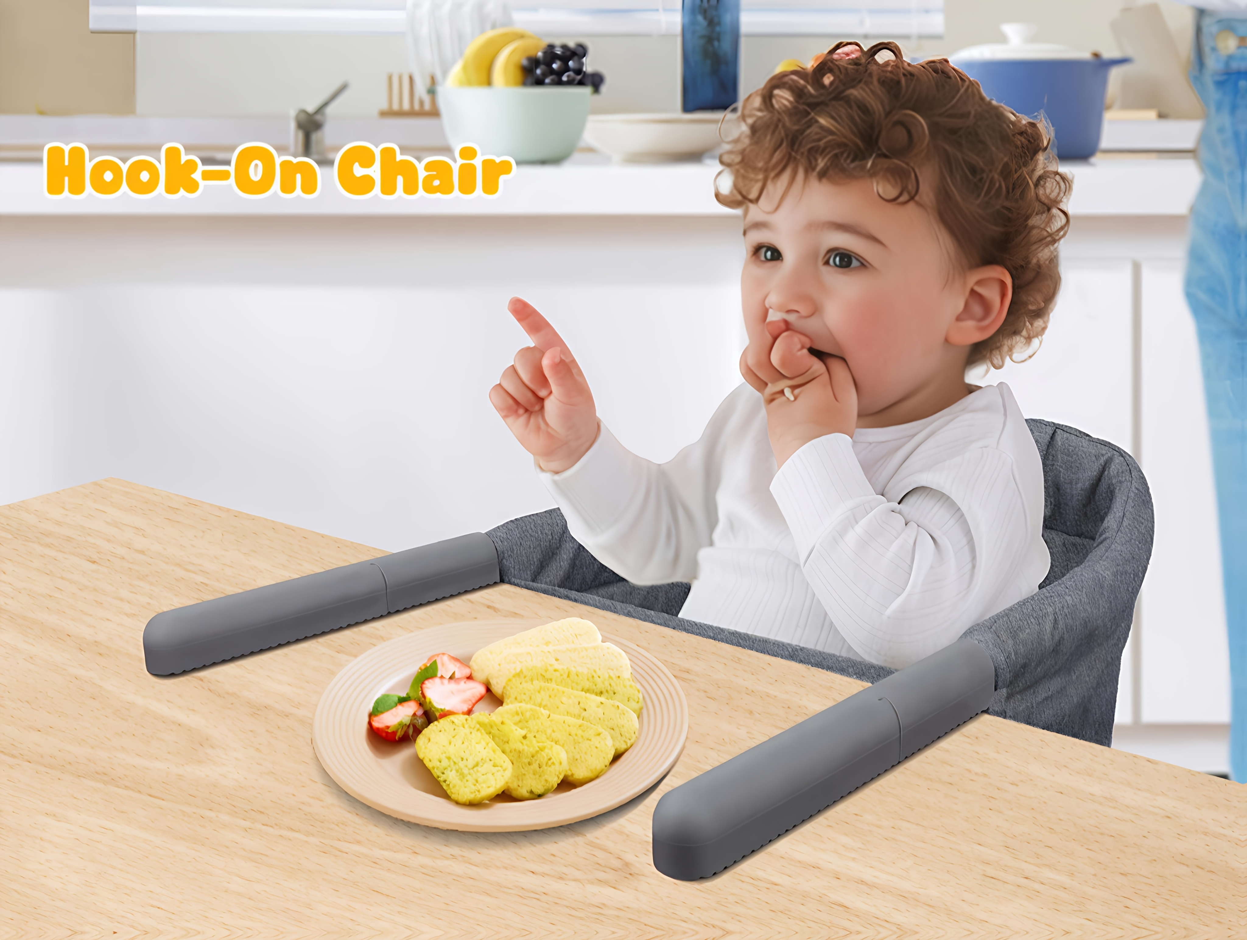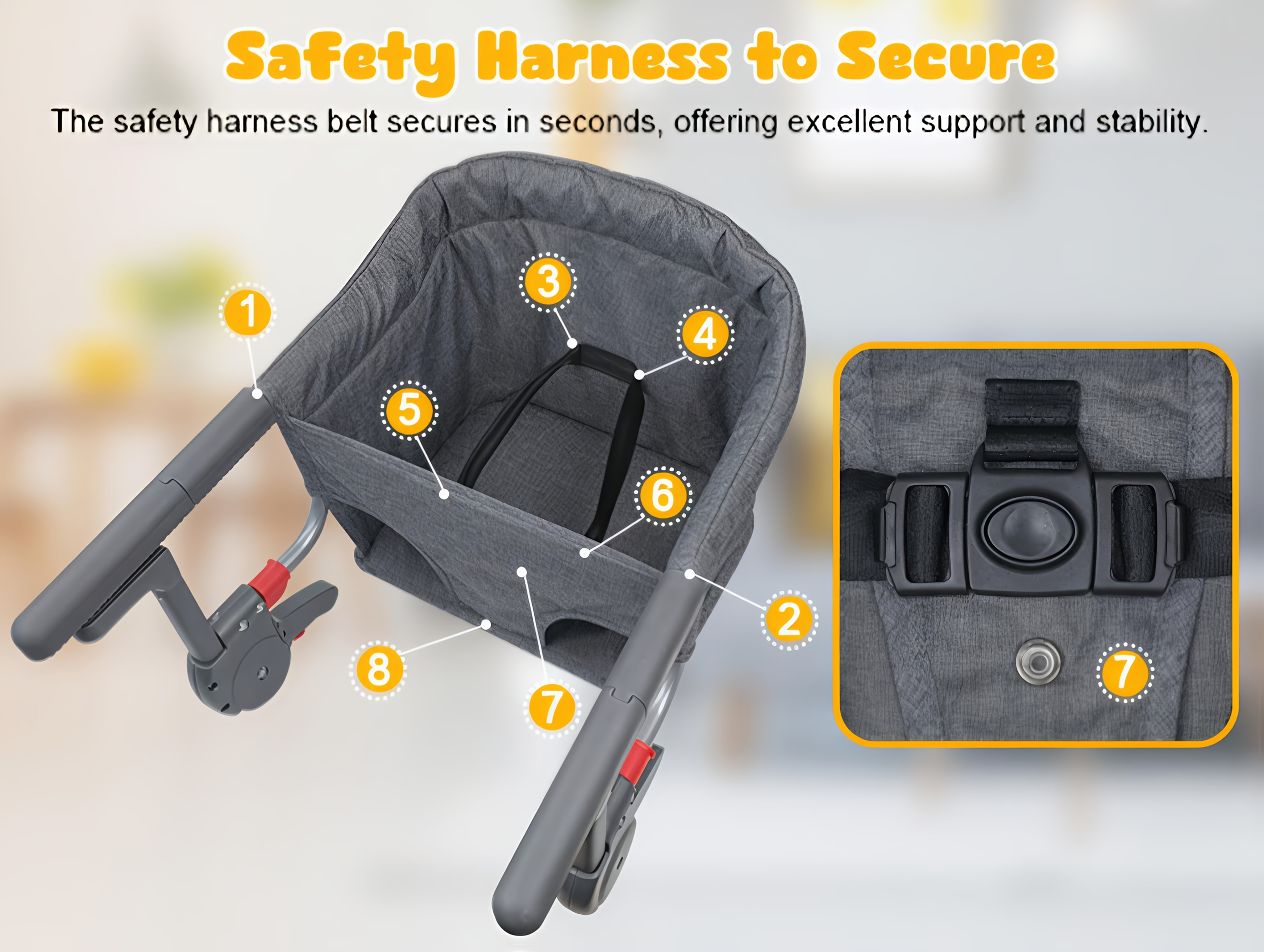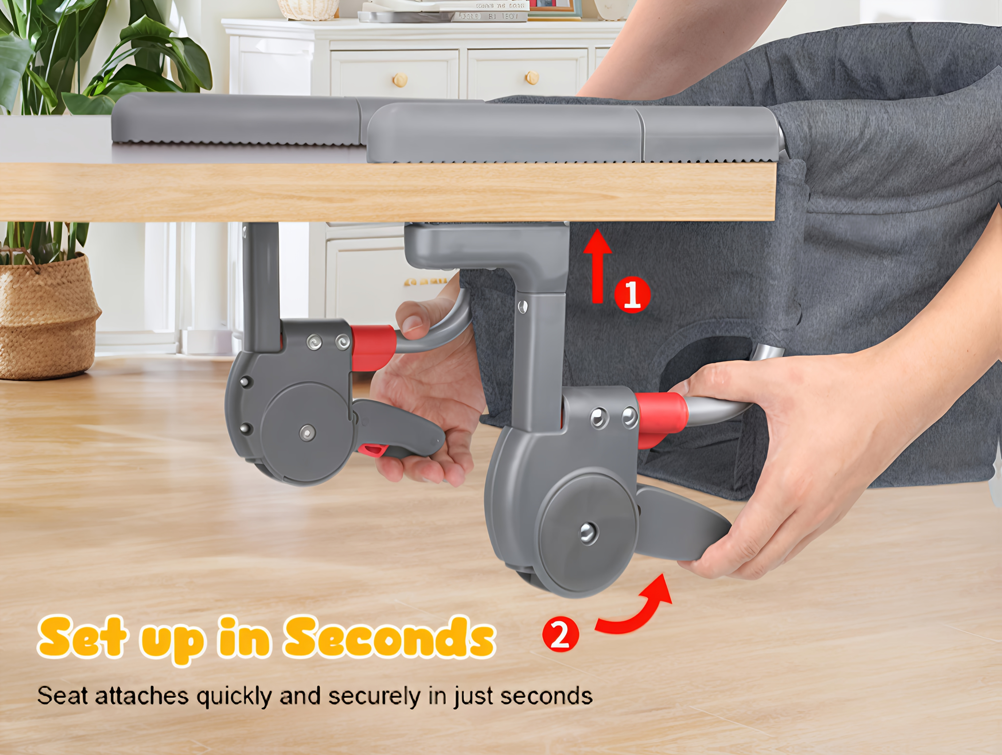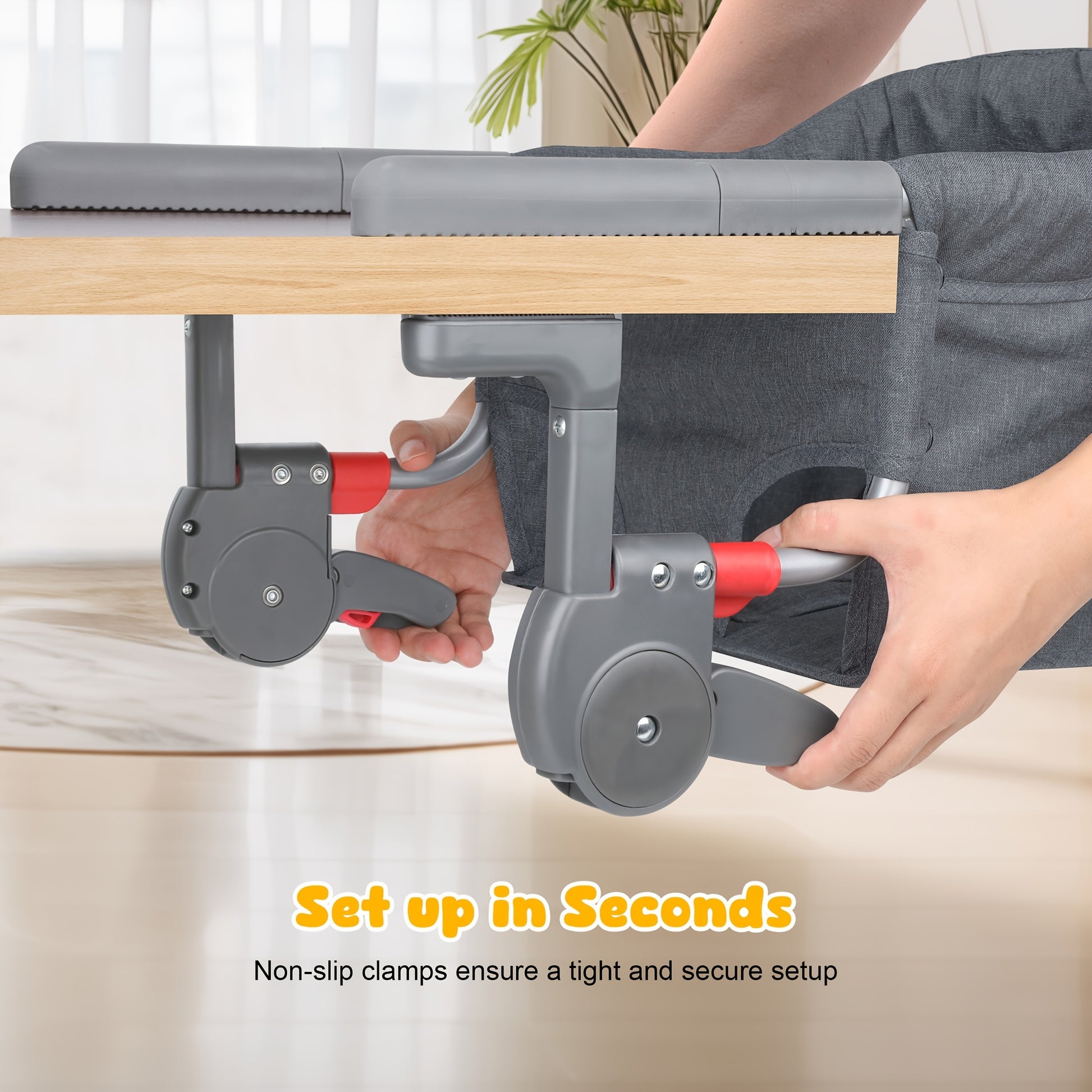 Hook On Chair: Portable Fast Table Chair with Storage Bag, Clip On Table Chairs for Babies And Toddlers, Foldable Baby Feeding Chair with Removable Seat for Home And Travel -Grey