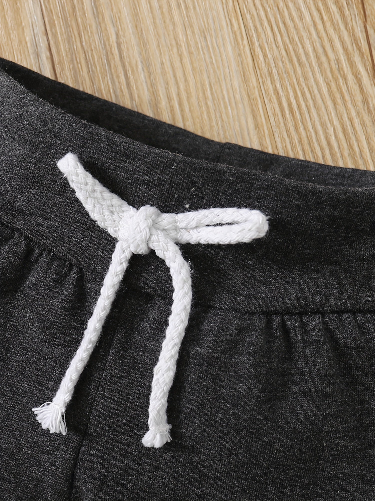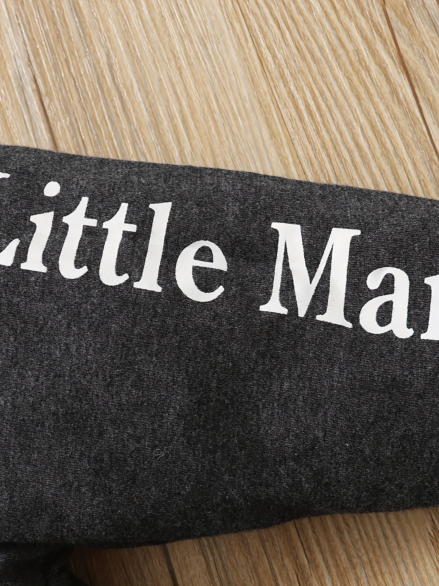 Infant and toddler pure letter printed cotton short sleeved jumpsuit+gray pants+hat three piece set